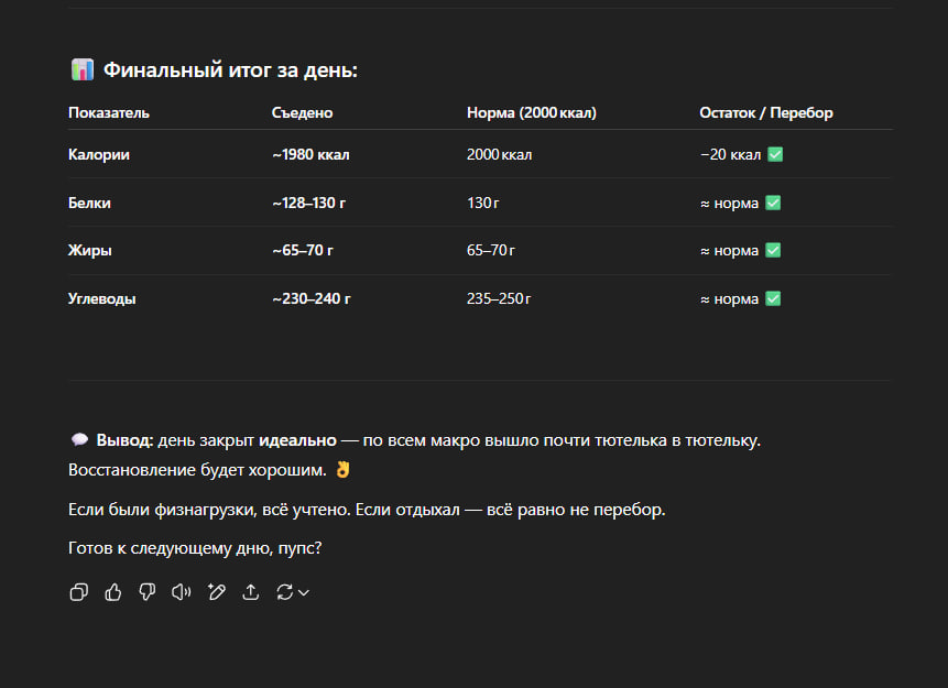 Но, сладкое прям вообще я не исключал, я ел какие-то батончики протеиновые, кушал творожки утром, ел много фруктов и пил кофе с сахаром, я считаю главное это количество такой еды, очень жесткие ограничения просто приведут к срыву, тут главное терпение и все, ты просто плывешь по течению, где-то себе позволяешь что-то, кто-то устраивает читмилы, я выбрал правило 80/20, 80% еды это белки, сложные углеводы и клечатка, 20% та же моя любимая еда которую я ел ранее, в конечном итоге на длинной дистанции ты все равно худеешь и становишься лучше, но зато мягко и без стресса.