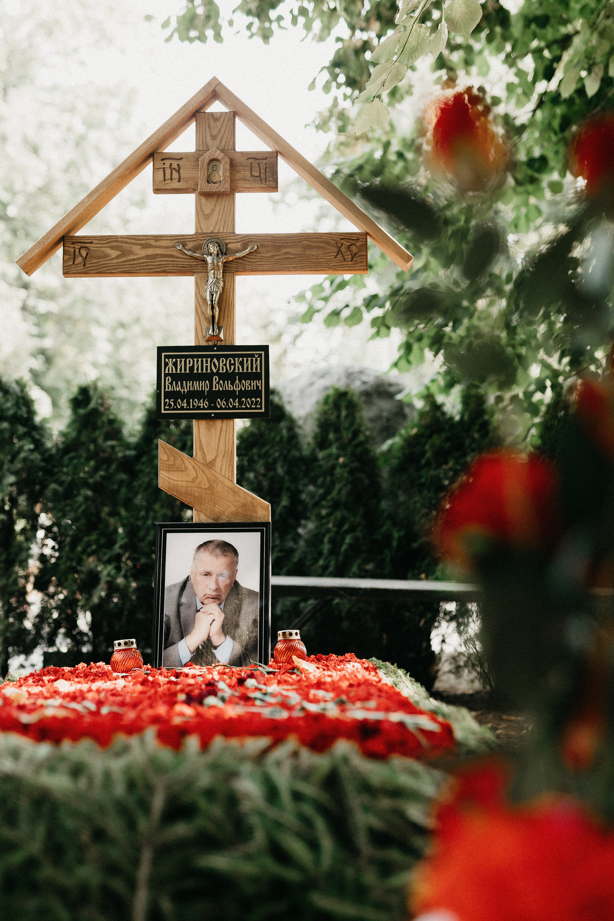 Памятник основателю ЛДПР Владимиру Жириновскому открыли на Новодевичьем кладбище в Москве в годовщину его смерти, в апреле 2023 года.
