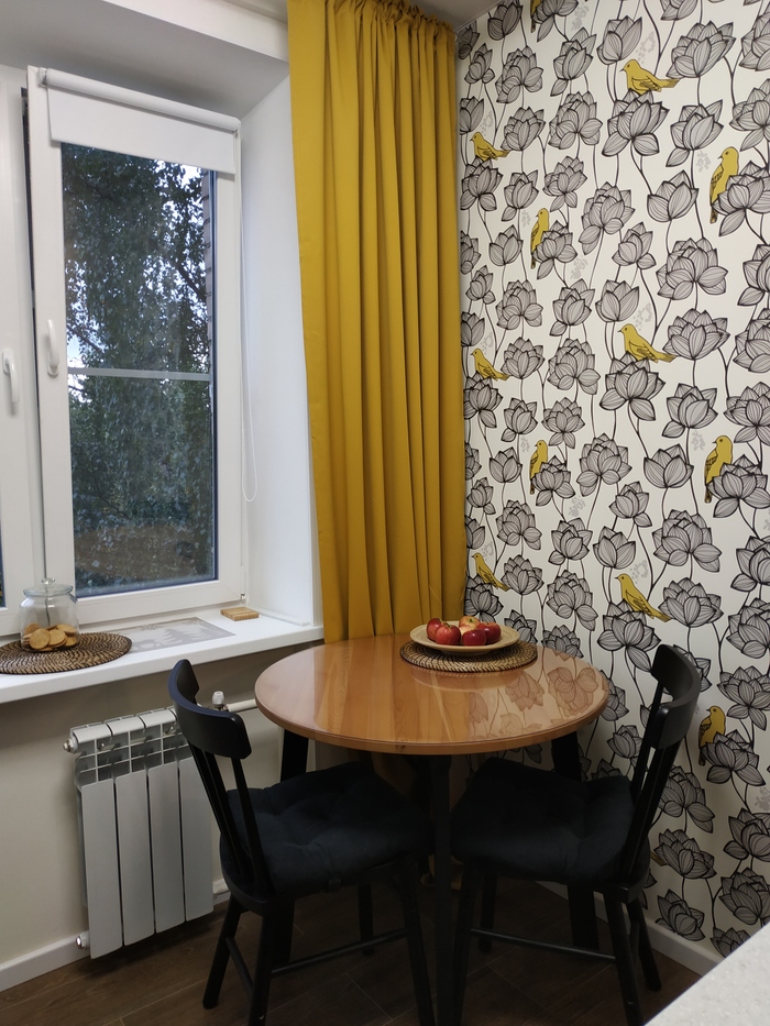 Последними уже купила стол со стульями, опять же важно было разместить это на кухне, поэтому диаметр стола - 85 см. На двоих хватает, а гостей уже в гостиной принимаем.