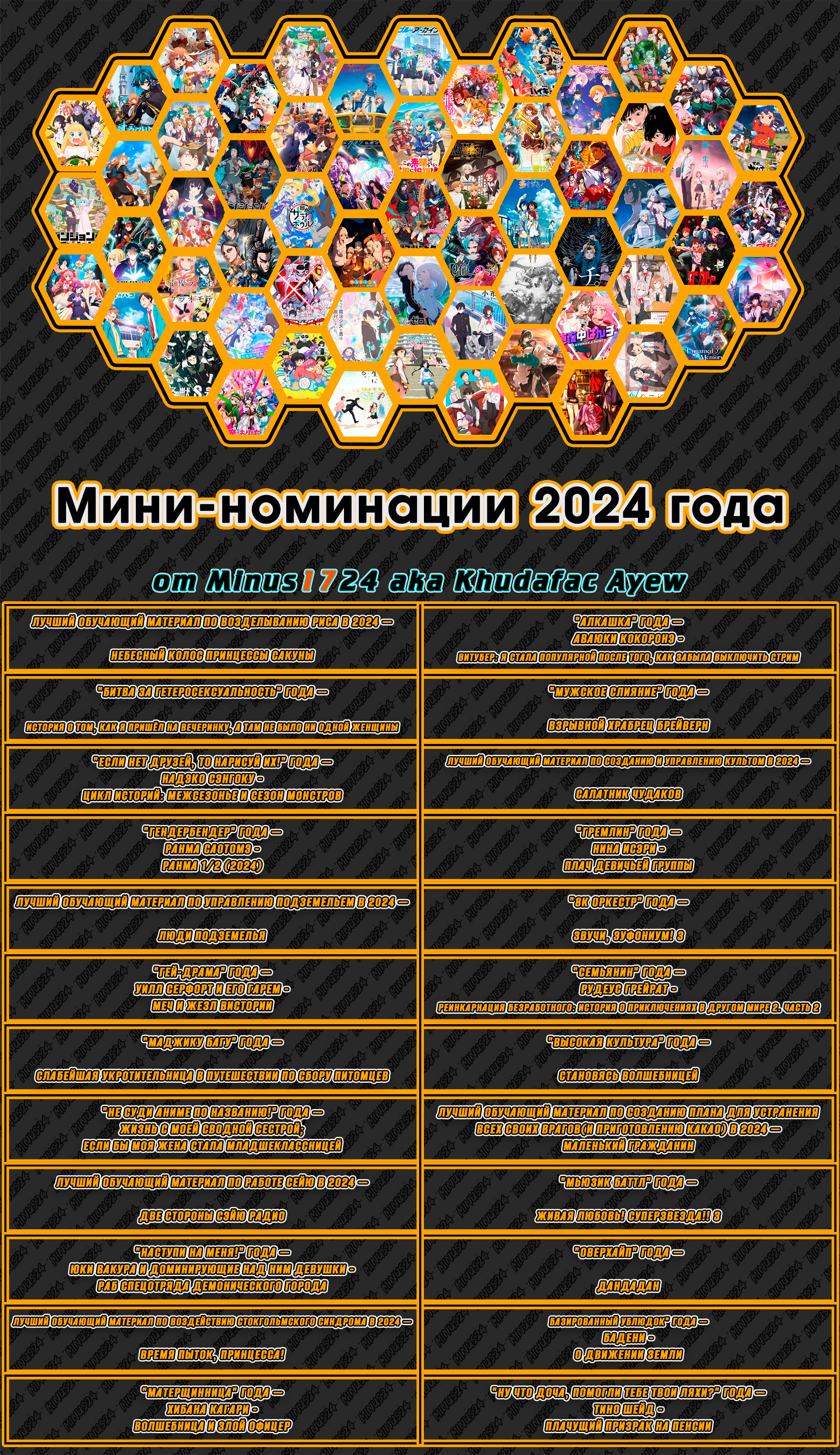 Решил всё же разделить итоги на несколько постов. Подумал что если всё будет собрано в одном посте, то более важные топы/списки перетянут на себя всё внимание. Поэтому решил хоть как-то всё это сгруппировать. Но первая часть итогов будет достаточно простой и не слишком объёмной. Это шуточные мини-номинации. Поэтому понятное дело без попытки кого-то оскорбить или задеть, без пропаганды чего-либо, кроме чувства юмора.
