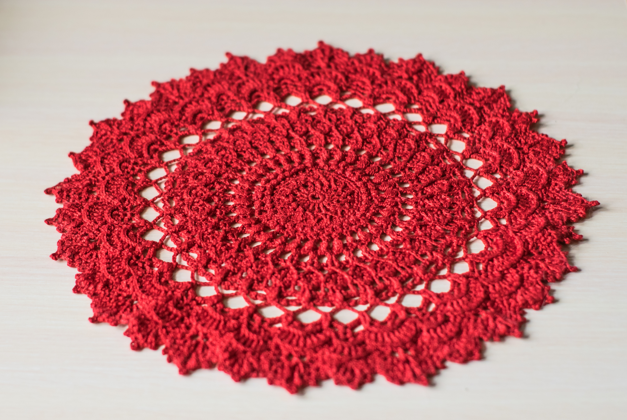 Закончив первую, мне захотелось связать сразу такую же вторую, но в красном цвете. Ее оставила себе. Если вы думаете, что салфетки только для декора, то могу из личного опыта сказать - они очень практичны. У меня например это теперь лежак для кота. Несчастное кружево, теперь все в шерсти.