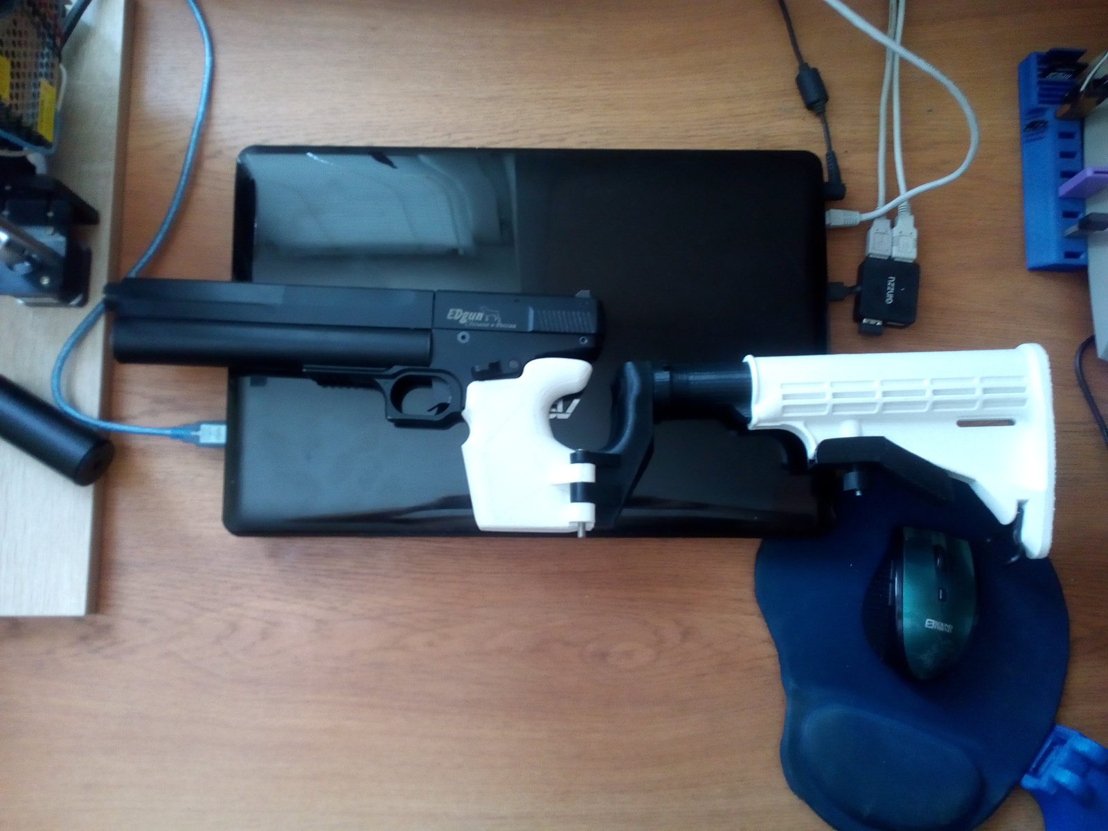 Материал- abs. Естественно постобработка в ацетоновой бане для упрочнения. Огрехов, конечно, куча. Есть, что дорабатывать и улучшать. Есть, что перерисовать заново (я бы немного изменил верхнюю часть рукоятки) Но я ведь только учусь:) Ну а стрелять надальняка реально стало очень комфортно.