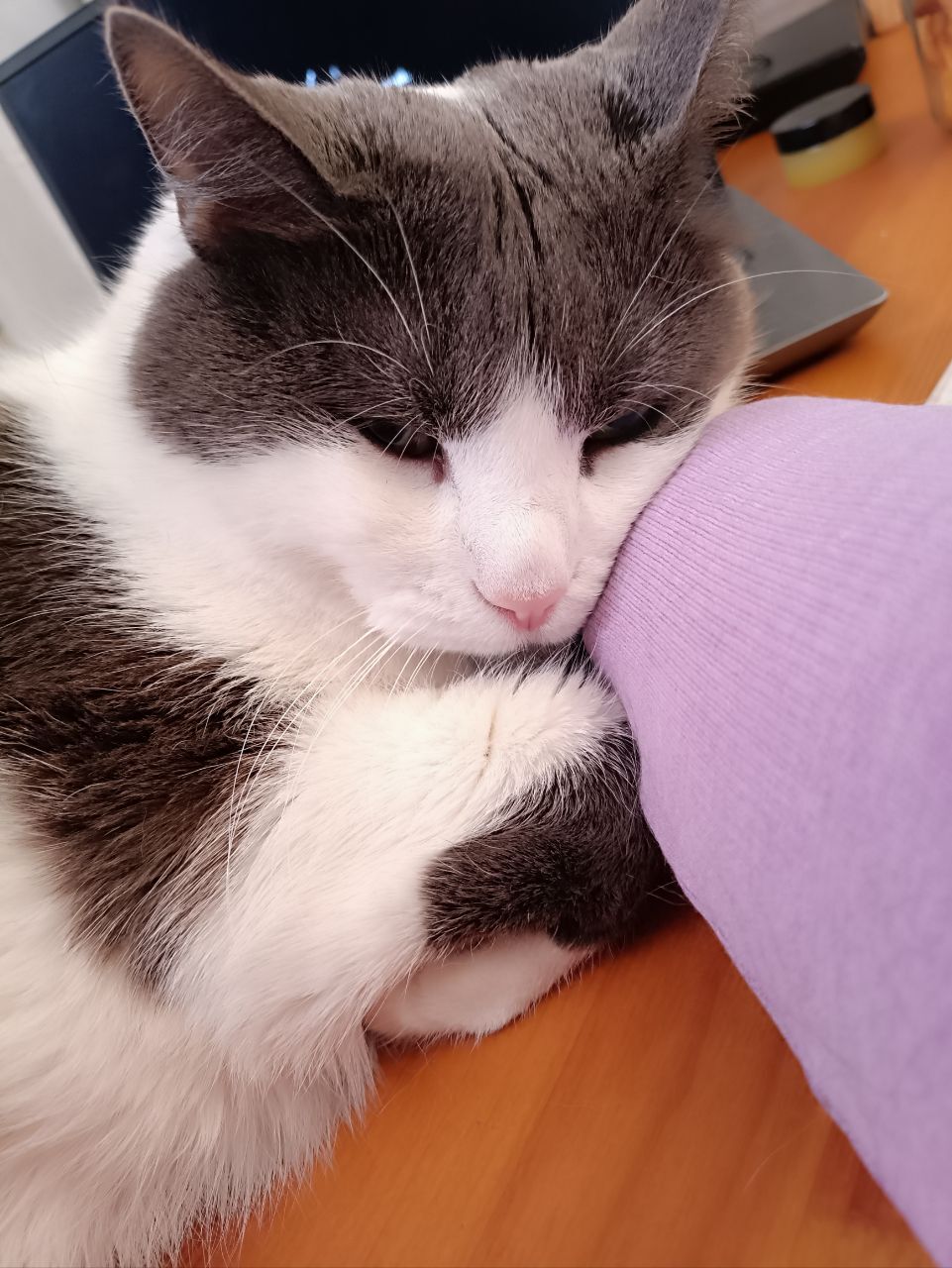 Мой ассистент на онлайн-занятиях. Если кошка не появляется в кадре, спрашивают: "А Маша выйдет?". Любит привлечь внимание пожиранием комнатных цветов.