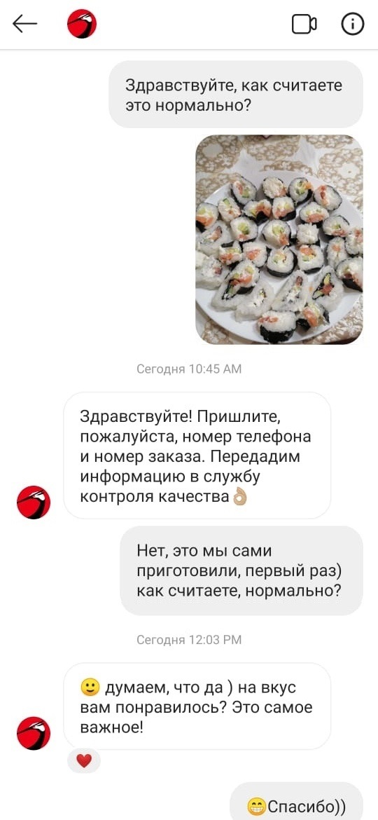 320 gudim.anton Юмор Мои первые роллы 5 лет назад Вчера впервые решили попробовать приготовить роллы. Результат вышел спорный, поэтому решили узнать мнение профессионалов.П.С. Все доставки - молодцы, отнеслись с пониманием. Желаю им успехов и процветания! [моё] Доставка Суши Юмор Кулинария Длиннопост 2 1 Ещё 0