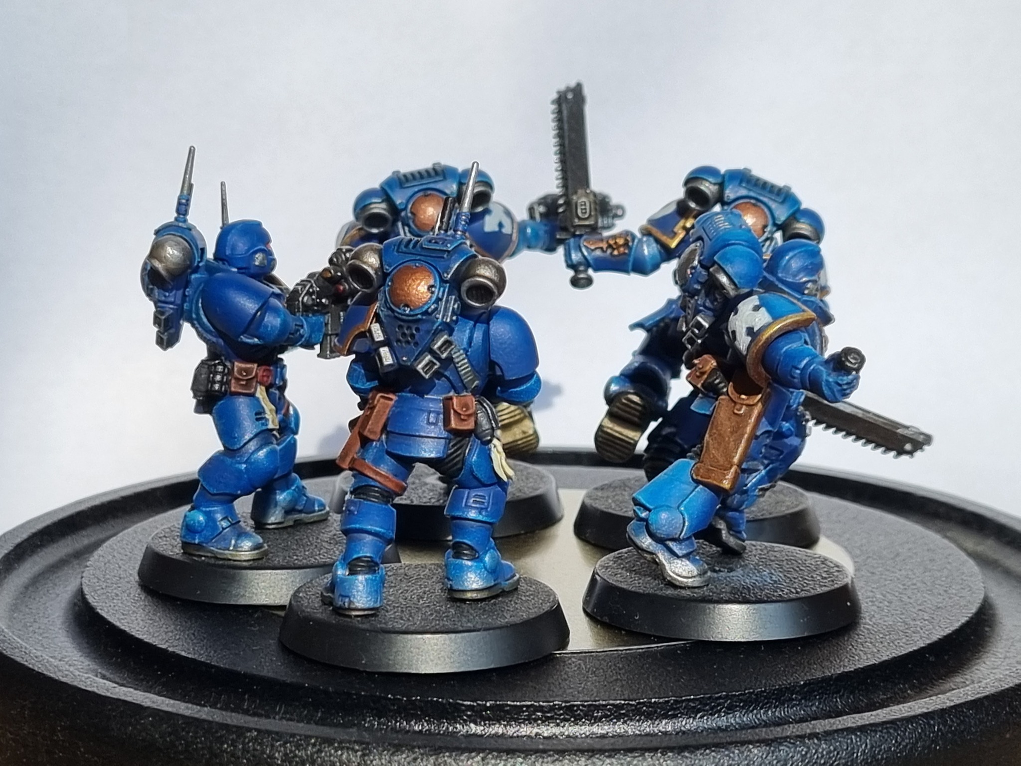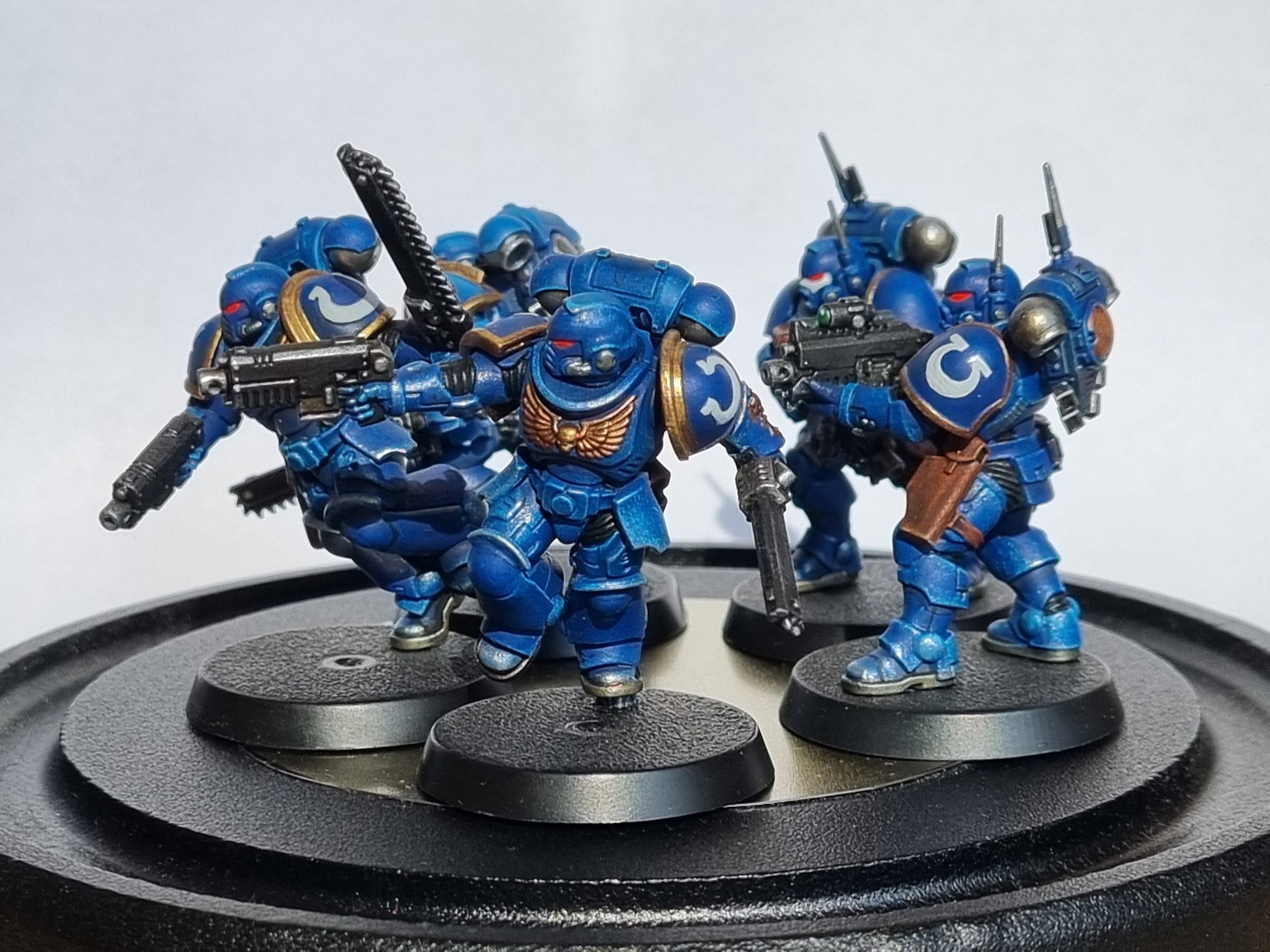 Вскоре я приобрел набор Space Marines Assault Intercessors and Paint Set. Провел пару десятков часов за просмотром роликов по покрасу, закупил грунт, дополнительные краски от Звезды, мини-дрель, сверла, пару маринов на СРМ и приступил ко второй попытке росписи.