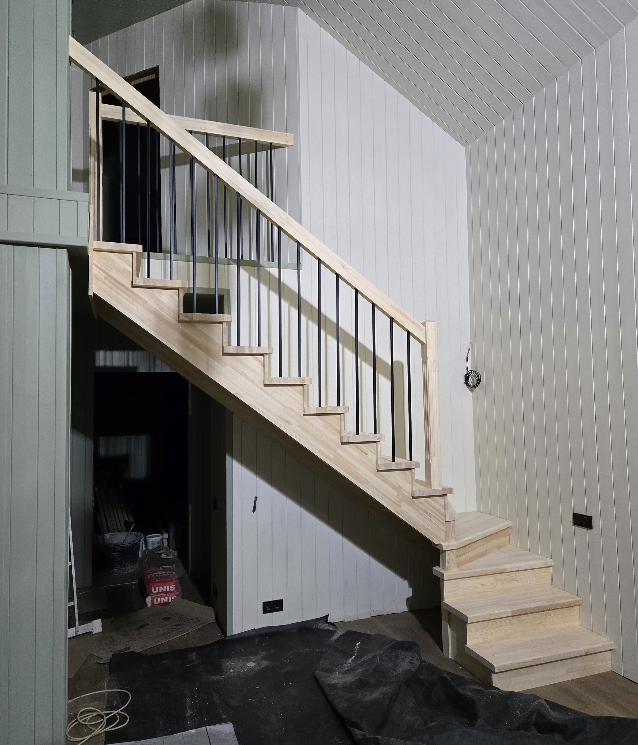 Интересная лестница с расширением верхнего марша на выходе
