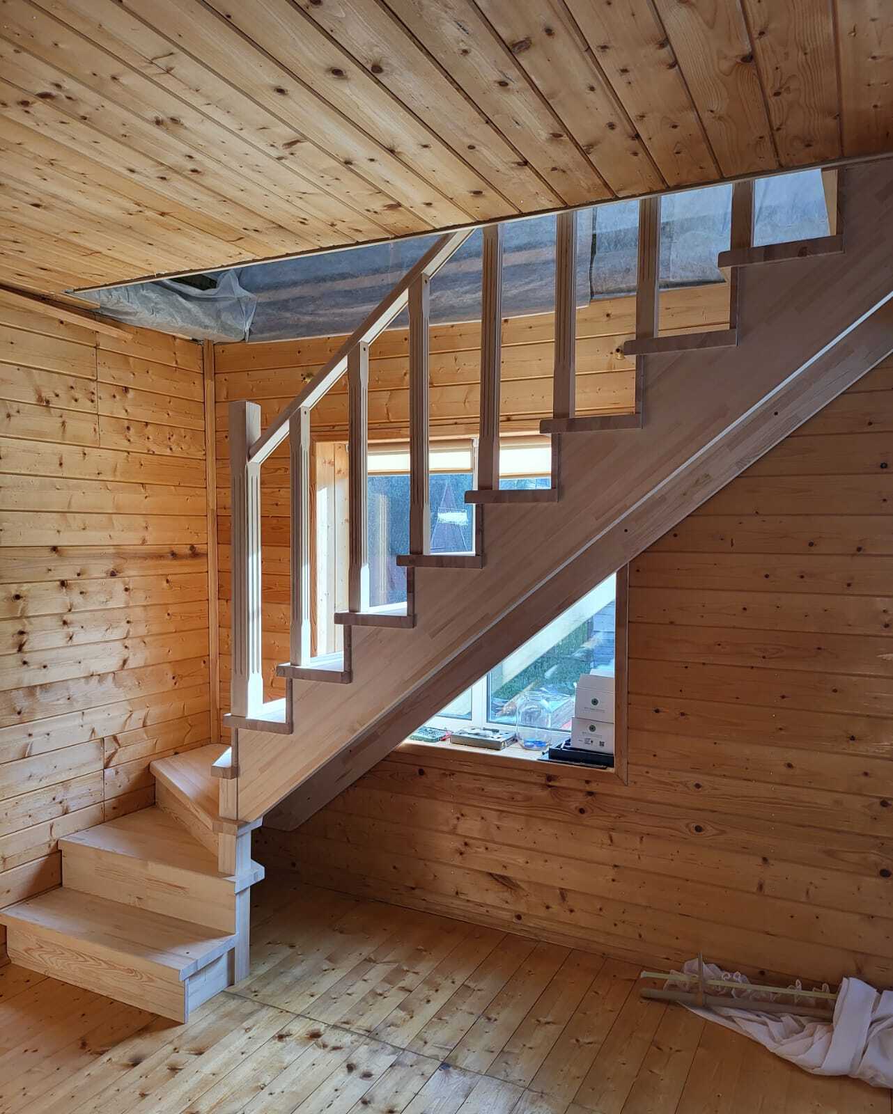 В бане лесенка с разворотом на 180 градусов через забежные ступени