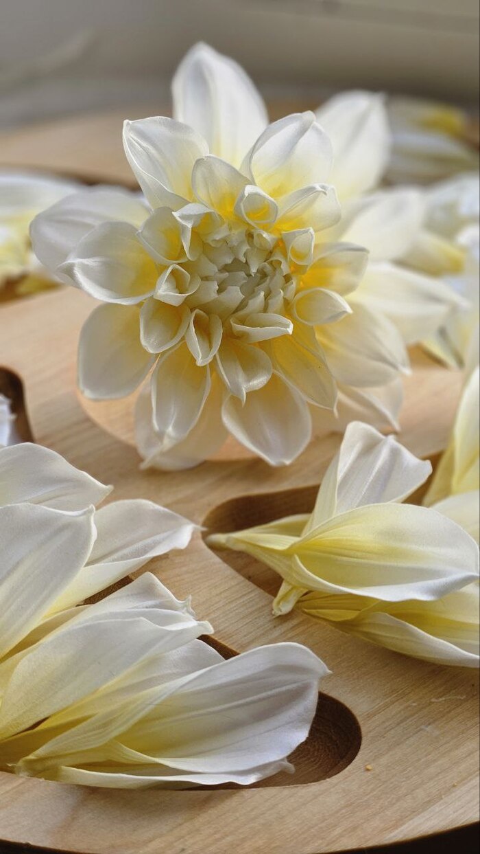 Каждый лепесток георгина (а их тут более 130 штук) вырезаю, окрашиваю, придаю нужную форму и только потом склеиваю в цветок.