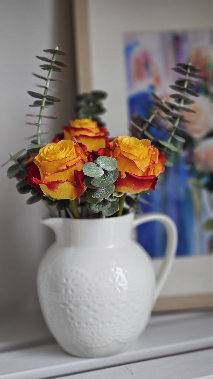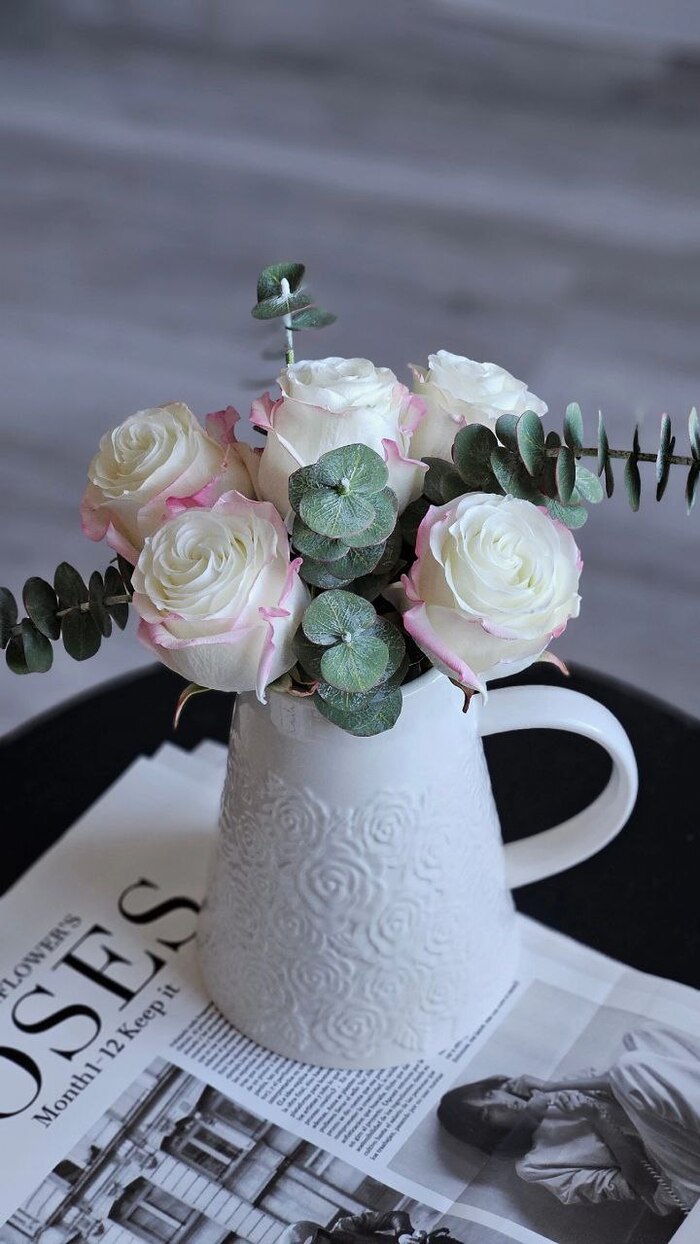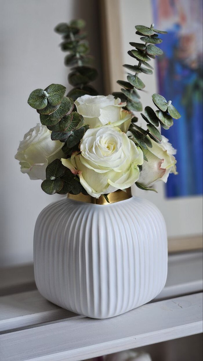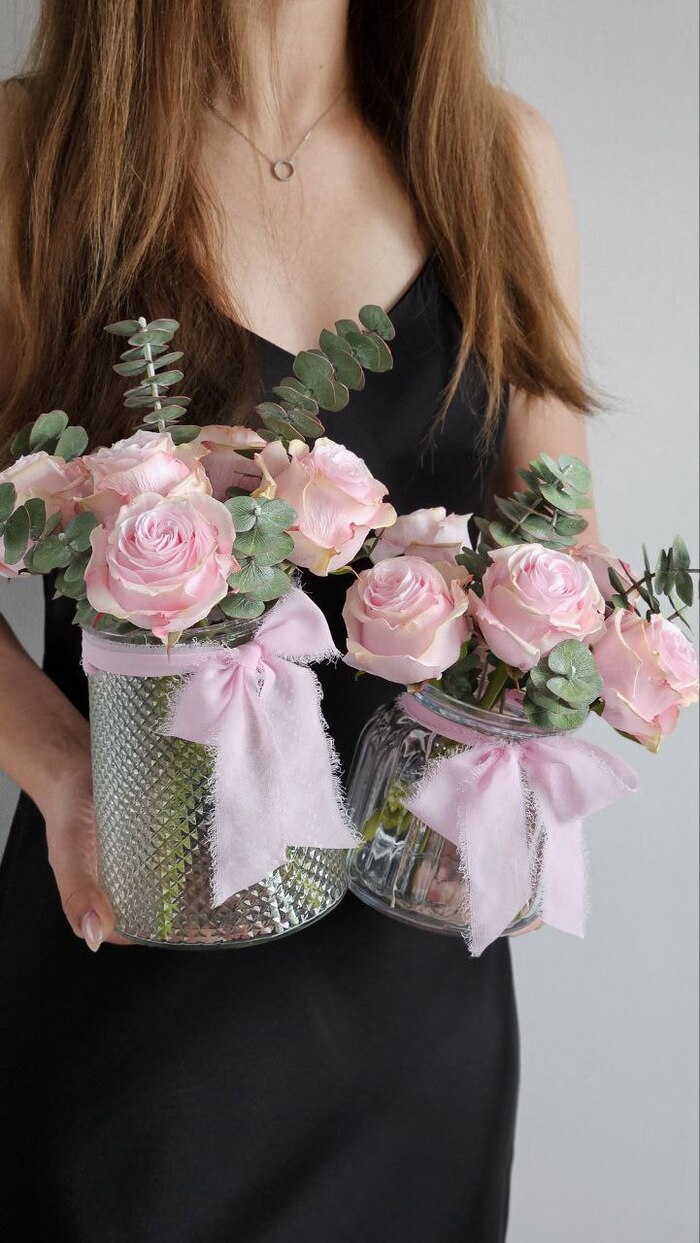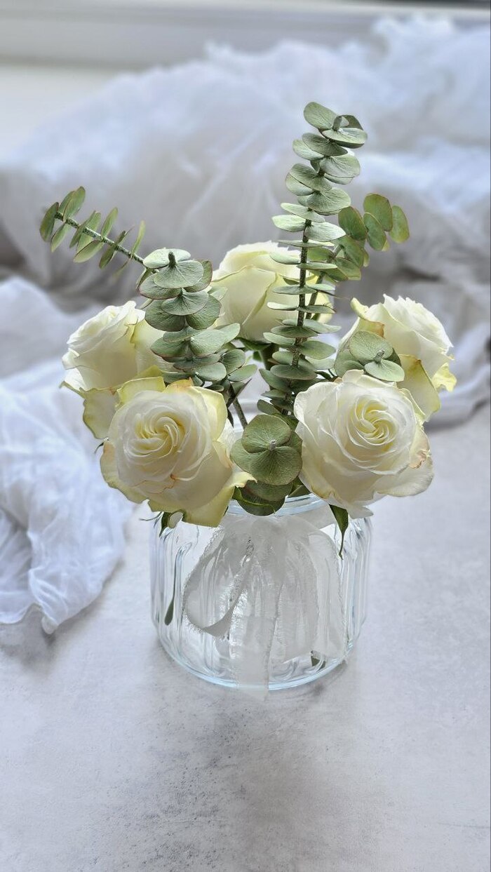Конечно же, не обошлось без моих любимых роз с эвкалиптом. Работы небольшие, по 5-7 роз.
