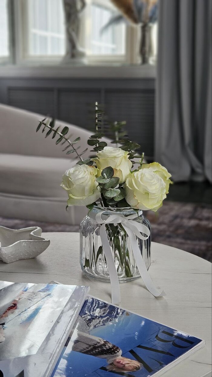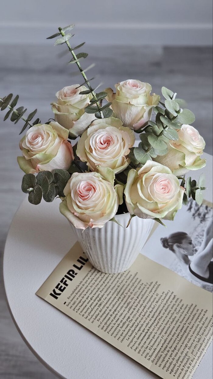 Розы, эвкалипт.