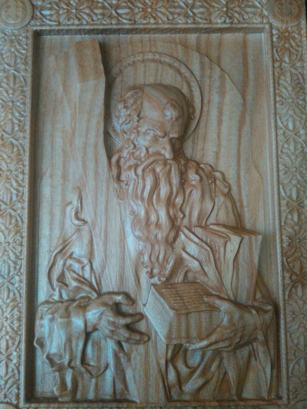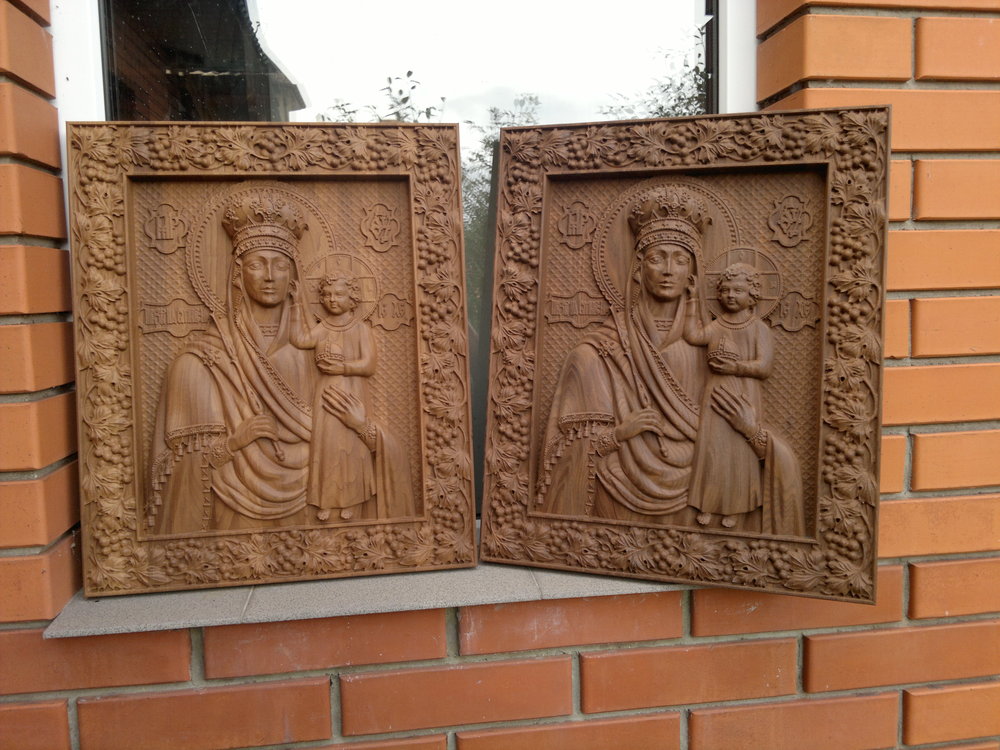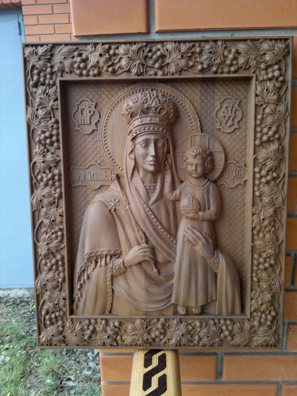 Не то дерево для икон выбрал. В рамке с виноградом какой-то мужик с бородой или шрамы от ожога.