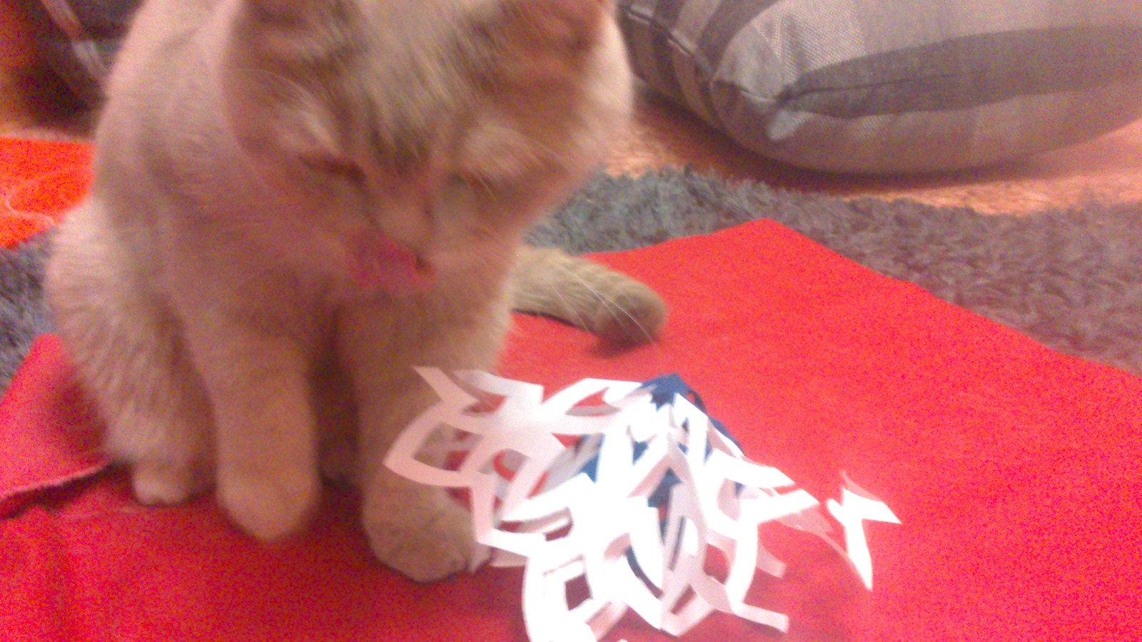 15 Elenira Мои снежинки ей не понравились 10 лет назад Сорри за качество фото, кошка постоянно в движении.. [моё] Кот Фото Снежинка