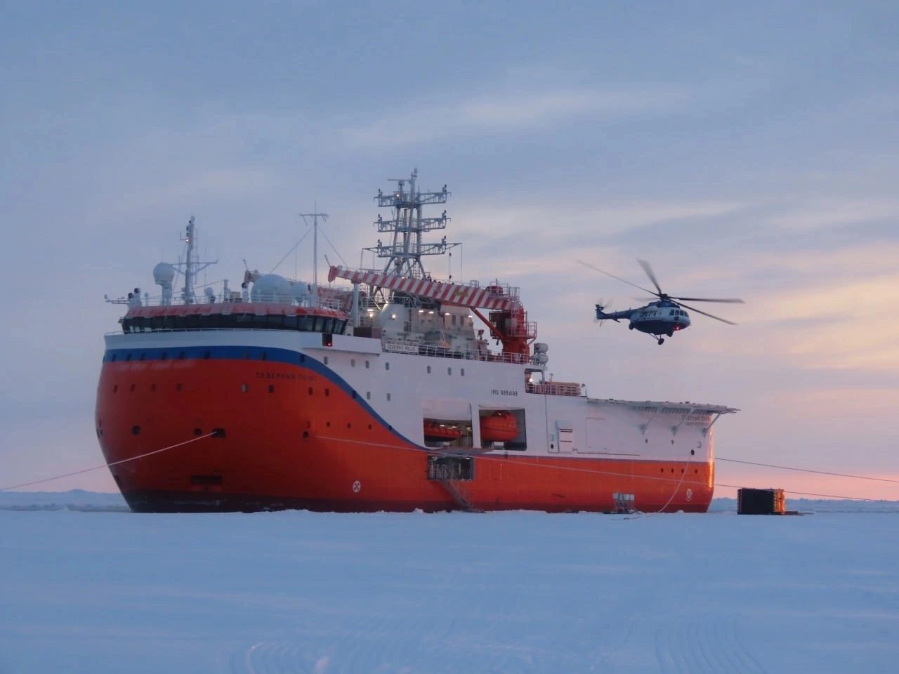 "Академик Трешников" следует к ледостойкой самоходной платформе "Северный Полюс" для смены и экипажа и научного состава