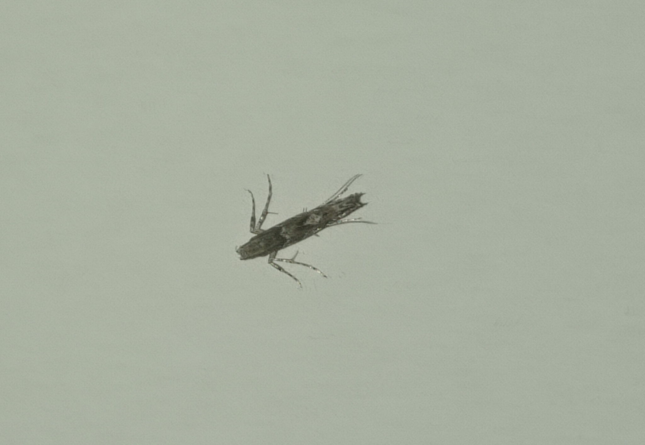 Сфоткал вот одну из последних бабочек, не погибшую ещё от холода. Эта мелочь 5 мм длиной - дубовая широкоминирующая моль (минирует она листья, а не поля, и не чем-то плохим, а своими личинками). Мелочь неказистая в кадре телефона. Но, если посмотреть поближе...