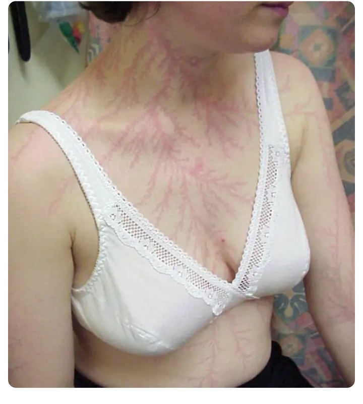Еще у выживших после удара молнии появляются такие узоры.