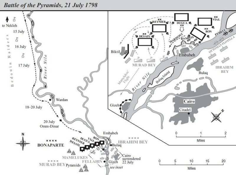 24 июля Бонапарт захватил Каир. Он быстро наладил там гражданское управление, отменил некоторые феодальные законы, и наладил реквизиции в пользу армии и конфискации денег у богатых купцов. А тем временем 1-2 августа вдалеке от Каира французов настигло поражение.