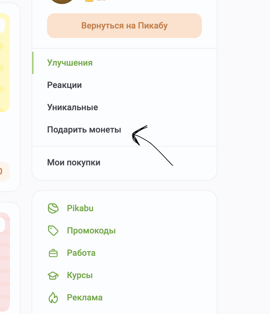 Для ЛЛ: чтоб отправить монетки Zatas'у в браузере надо: нажать на свой профиль -> нажать на монетки -> в верхнем горизонтальном меню выбрать "подарить монеты" -> ввести ник zatas и число монет -> нажать кнопку "Подарить". Профит!