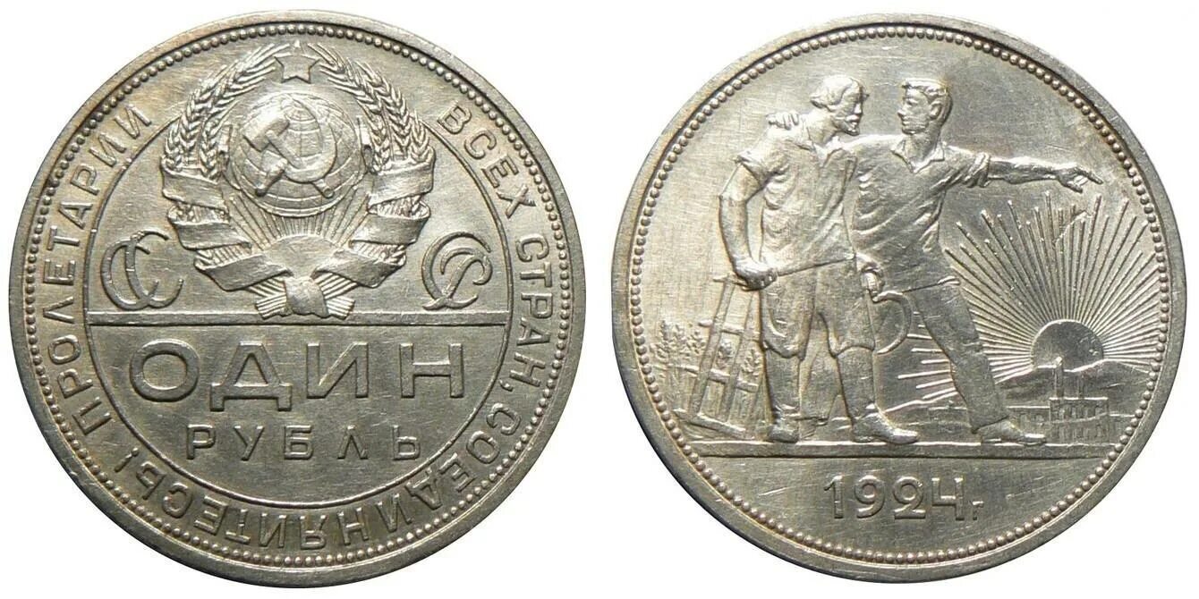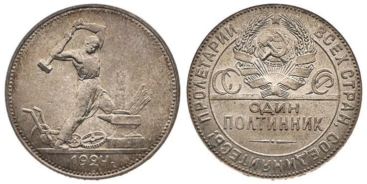 На аверсе советский герб, номинал и надпись "Пролетарии всех стран соединяйтесь. На реверсе год и молотобоец у наковальни.
