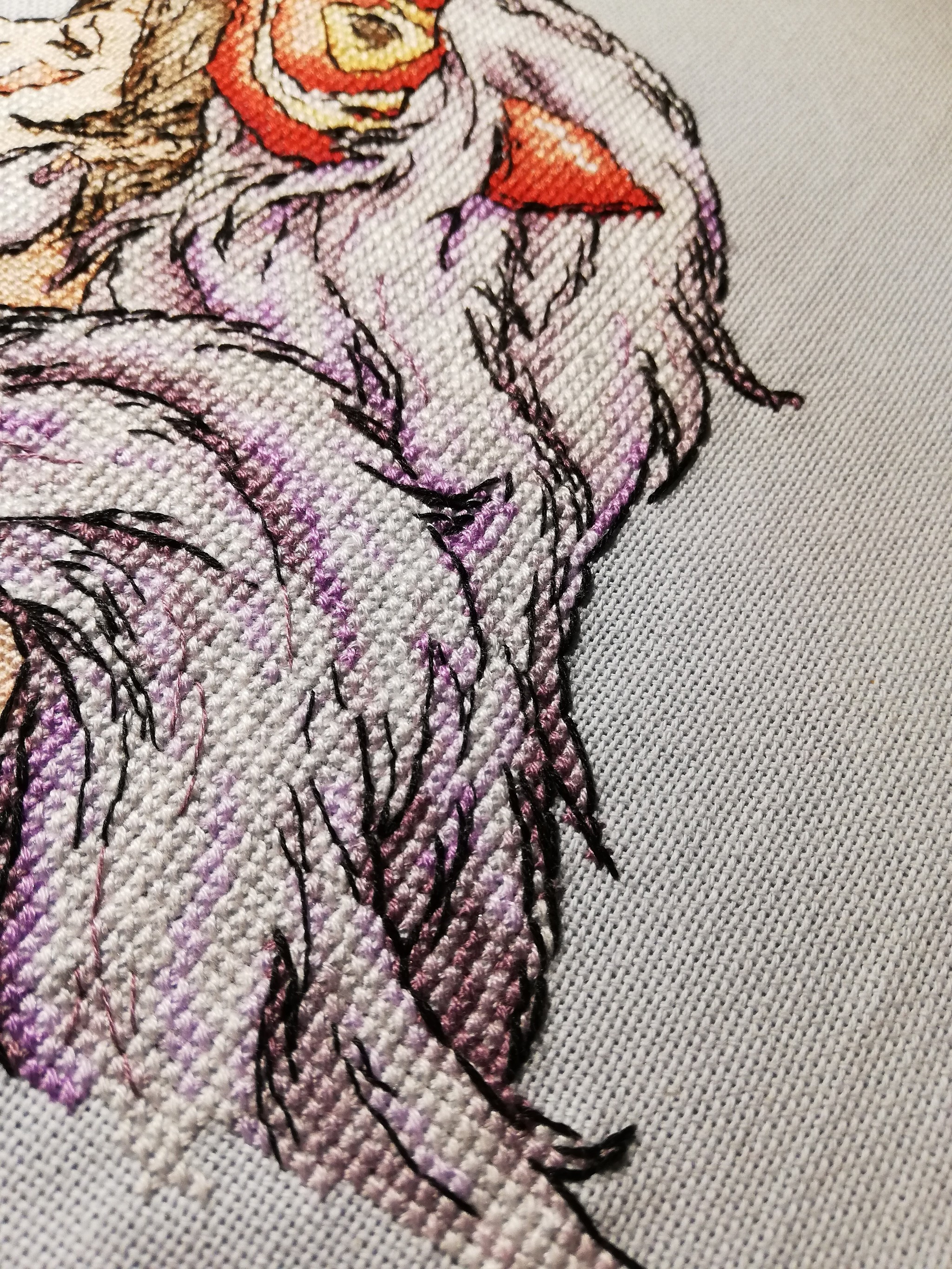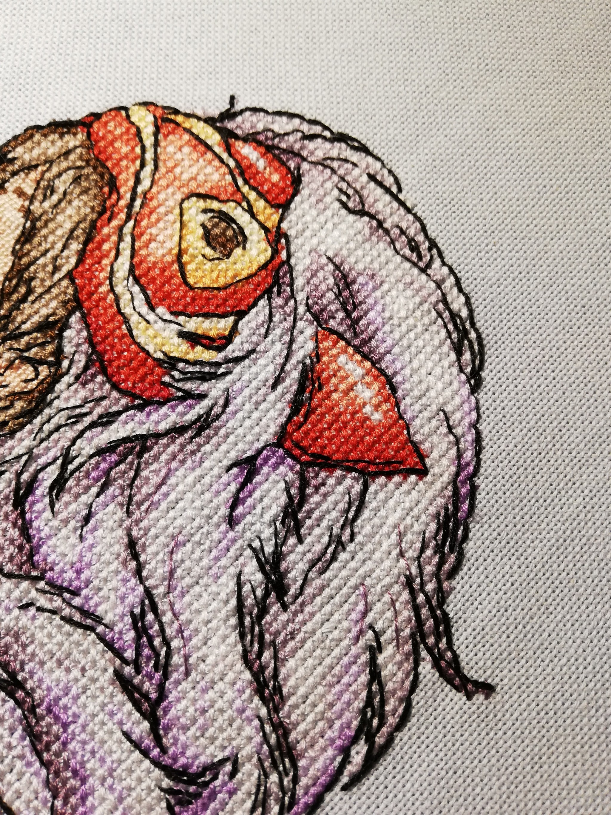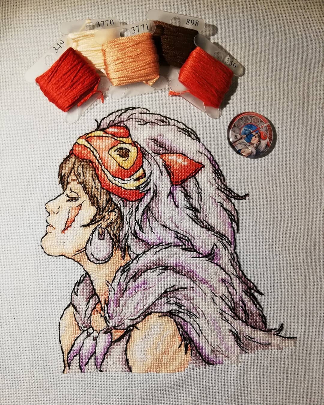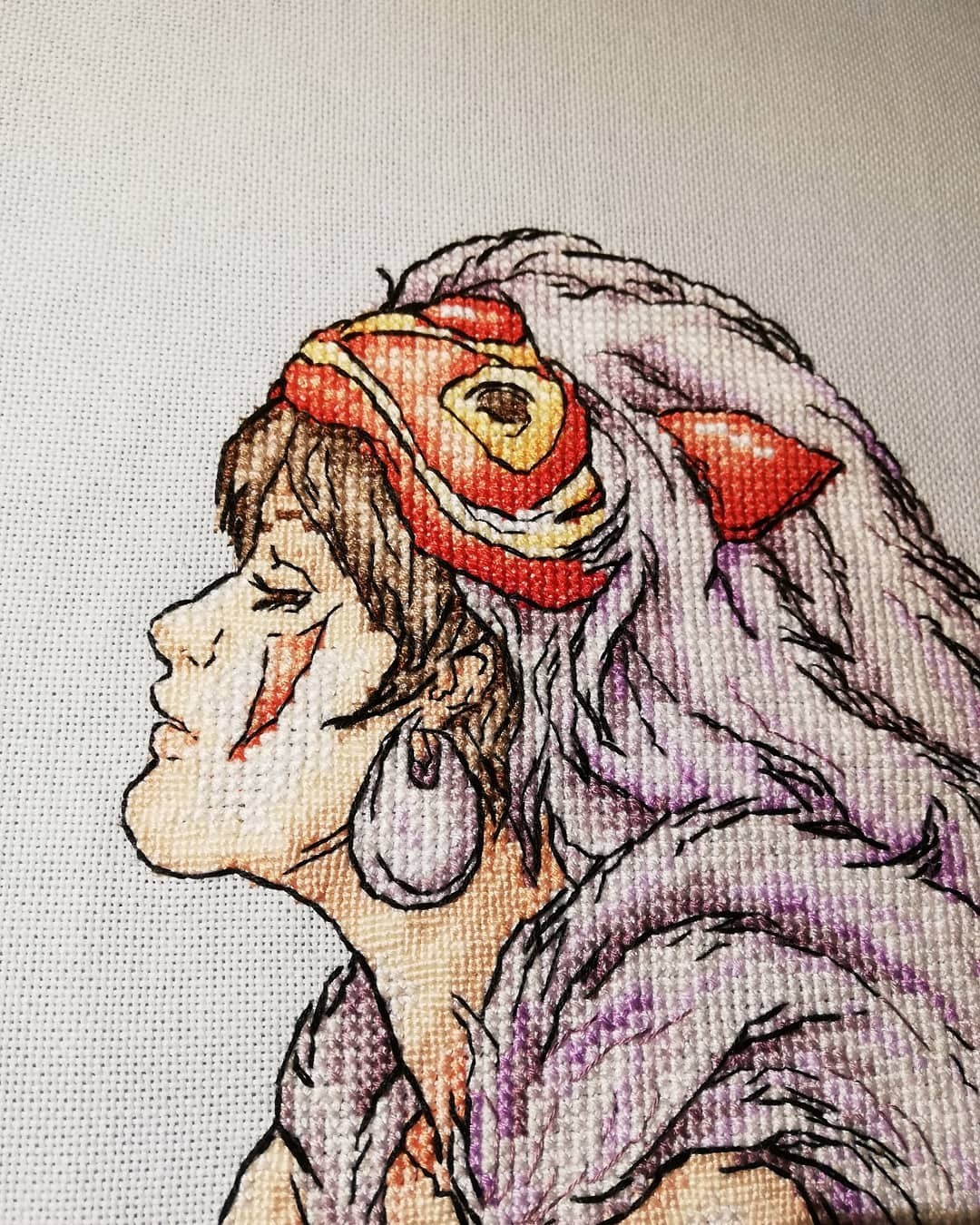 Я обожаю творчество Хаяо Миядзаки!🐺 Поэтому, когда увидела эту схему, моментально влюбилась и вышила на одном дыхании!🧵 В работе использовала нитки DMC по ключу. Выполнение работы: крест, петит, счетный бэкстич