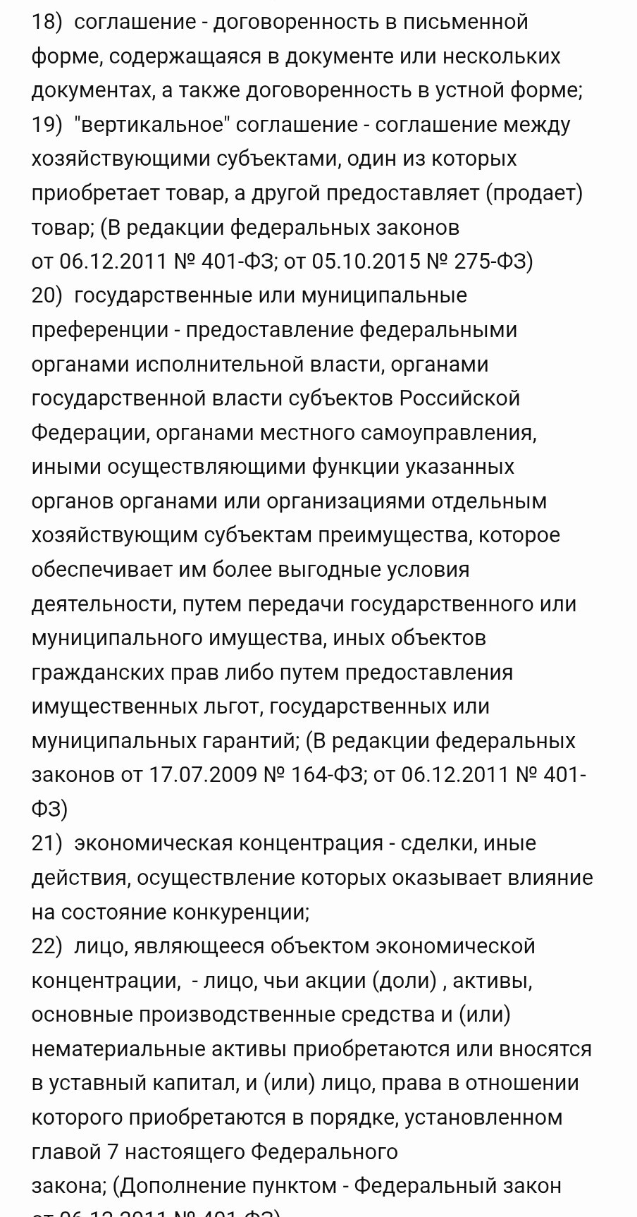 1. Настоящий Федеральный закон распространяется на отношения, которые связаны с защитой конкуренции, в том числе с предупреждением и пресечением монополистической деятельности и недобросовестной конкуренции, и в которых участвуют российские юридические лица и иностранные юридические лица, организации, федеральные органы исполнительной власти, органы государственной власти субъектов Российской Федерации, органы местного самоуправления, иные осуществляющие функции указанных органов органы или организации, а также государственные внебюджетные фонды, Центральный банк Российской Федерации, физические лица, в том числе индивидуальные предприниматели. (В редакции Федерального закона от 17.07.2009 № 164-ФЗ)