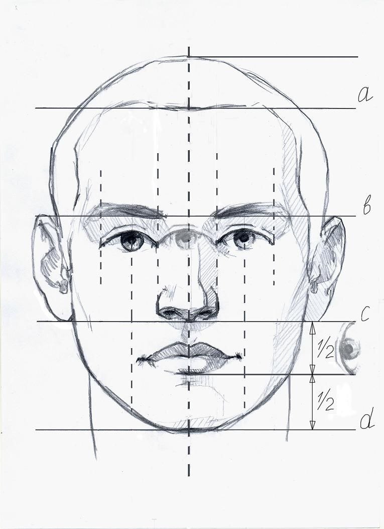 Ниже изображены пропорции лица человека, которые эксперт должен соблюдать при изготовлении субъективного портрета разыскиваемого лица.