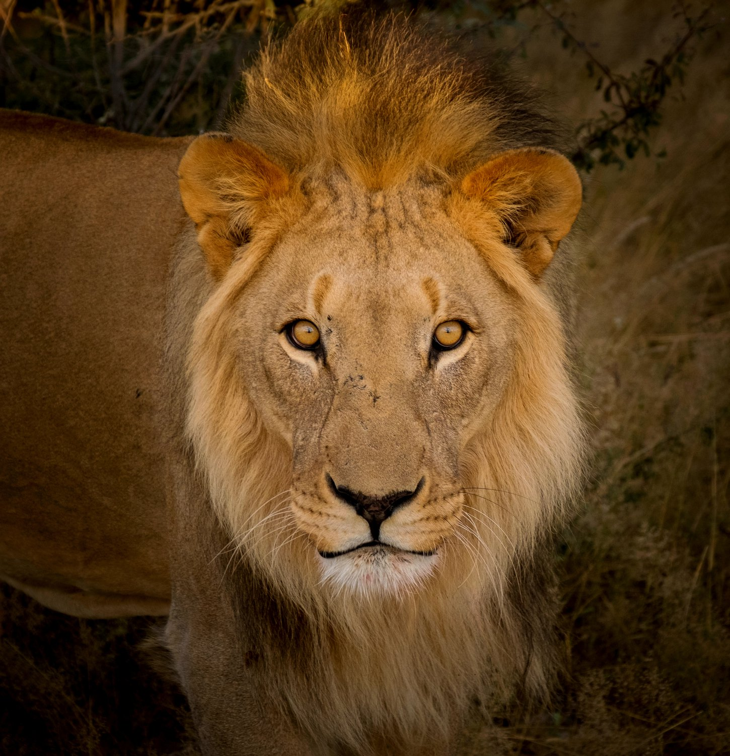Лев. Встреча во время сафари в Национальном парке ЭтОша (Южная Африка, Намибия).