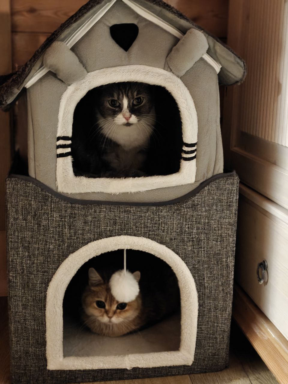 Плюс, возвраты после пристройства (Ночка - мяукала, когда оставалась одна, Зеленоглазка слишком не ласковая).
