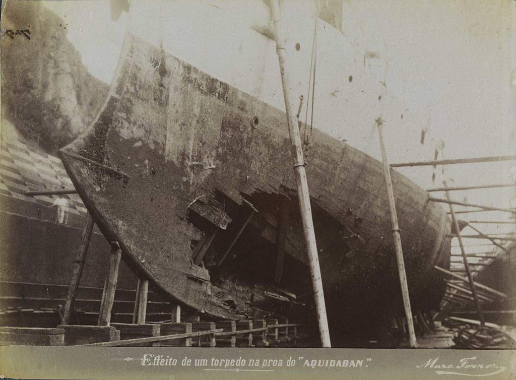 А потом случился облом — Рио так и не взят, армию так и не собрали, форты разрушены от постоянных обстрелов, позиции потеряны, а у Пейшоту появился нормальный флот — в том числе, и за счёт поддерживавших его молочно-кофейных баронов. И этот флот двигался в сторону Рио, куда к 10 марта и добрался. Началась паника — потому что за месяцы обстрела боеприпасов оставалось не то чтобы много. Было принято решение разделиться. Де Мело на броненосце «Аквидабан» (и примкнувшие к нему суда) решил плыть на юг, в сторону сражавшихся в Санта-Катарина федералистов. Второй лидер восстания — адмирал да Гама — решил скрыться на португальском корабле. С ним вообще отдельная история получилась. Португальцы предоставили ему и части его команды политическое убежище на одном из своих кораблей. Бразильские власти потребовали выдачи адмирала — поскольку обвинялся он не по политическим мотивам, а в пиратстве, следовательно, права на убежище не имел. Португальцы же с этим не соглашались, но в качестве компромисса обязались не давать беглецам сойти на землю. И как-то так случайно получилось, что когда португальцы стали на якорь в местечке Прата, да Гама и 254 члена его команды… Сбежали. Да, абсолютно случайно. Нет, это никак не связано с тем, что Прата контролировалась повстанцами-федералистами.