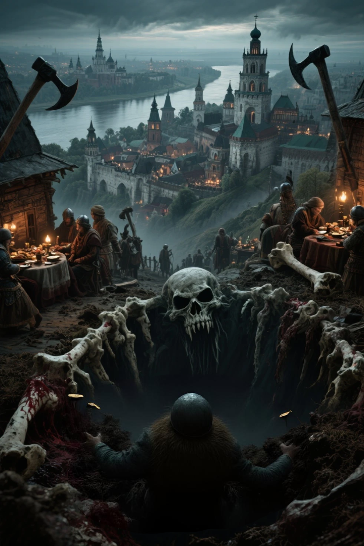 Киев вонял жизнью. Не пах, а именно вонял — густым, первобытным, одуряющим смрадом, который лениво поднимался от Подола, словно испарения из вечно урчащего брюха, и полз вверх, к чистым ветрам Горы, где жил князь и его гридница. Этот зловонный букет был таким сложным, что любой, кто попадал в город впервые, давился им, как прокисшим вином. Он был соткан из миазмов, от которых некуда было деться. Едкий аммиак свежего навоза, что лежал лепешками на мостовых. Плотный, сырой дух гниющих овощей и рыбьих потрохов, которые выбрасывали прямо в уличные канавы. Кислый, как рвота, запах квашеной капусты и пролитого пива смешивался со сладковатой, трупной вонью Днепра в летний зной, когда река выносила на свои берега раздутые туши павших коров и собак.