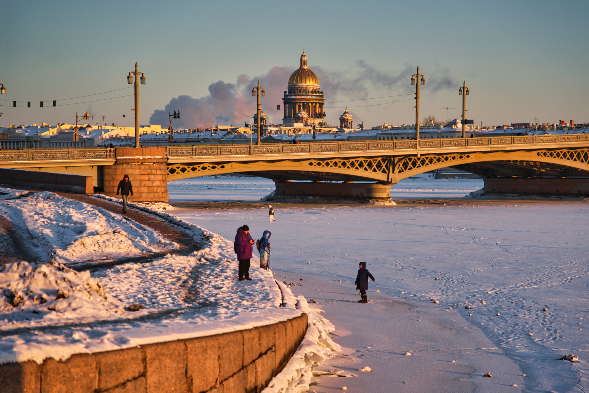 Но, в основном, граждане предпочитали всё же твердый и уверенный берег. Мороз морозом, а Нева -- девушка опасная.