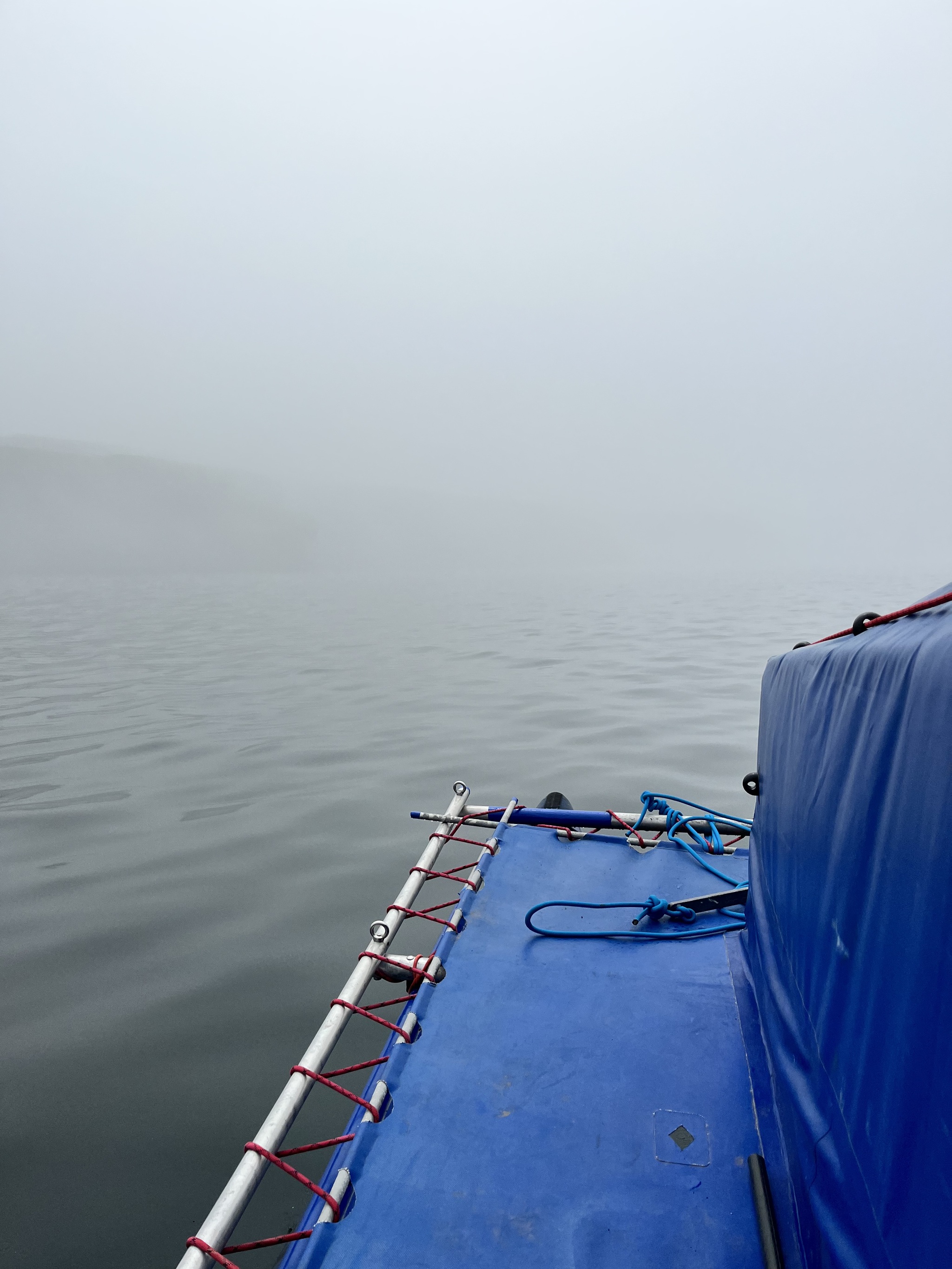 Сообщили пограничникам, что выплываем и когда возвращаемся. На море был туман, я не расстраивался пропустить все красоты береговой линии, я мысленно был уверен, что на обратном пути все увижу, да и в тумане есть свой шарм. Мы уплывали в неизвестность и береговые скалы пробивались сквозь белую пелену.