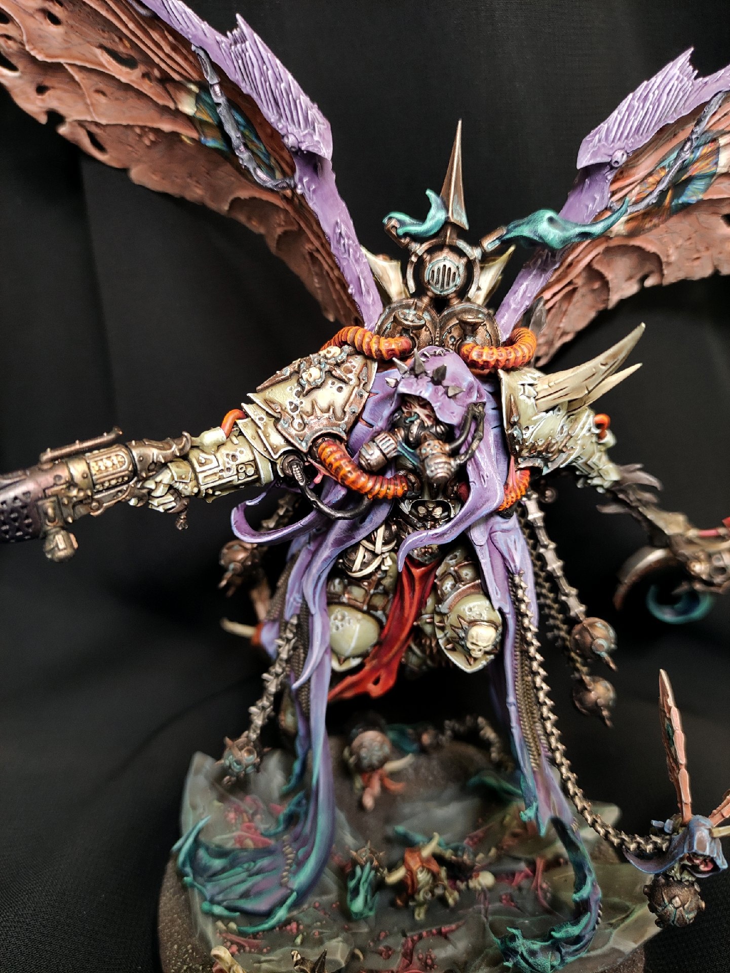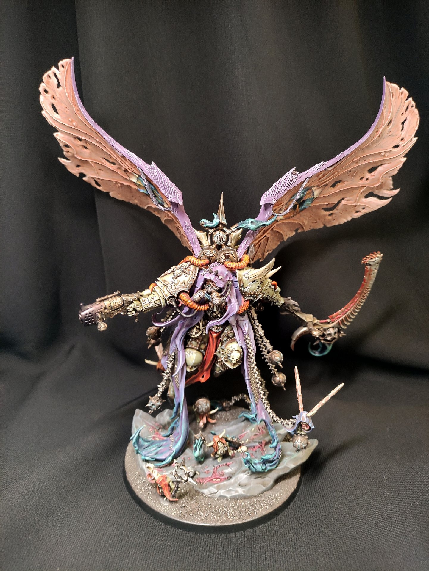 Тем неожиданнее, что у меня в руках оказался Мортарион. Никогда особо не нравилась эта миниатюра, но только в процессе покраса поняла, что её просто передизайнили. Слишком много всего, глазу не за что зацепиться.