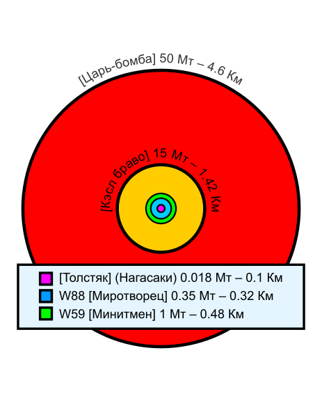 Кому лень лезть на википедию: Огненный шар взрыва достиг радиуса примерно 4,6 километра. Теоретически он мог бы вырасти до поверхности земли, однако этому воспрепятствовала отражённая ударная волна, подмявшая и отбросившая шар от земли. Излучение потенциально могло вызывать ожоги третьей степени на расстоянии до 100 километров. Ионизация атмосферы стала причиной помех радиосвязи даже в сотнях километров от полигона в течение около 40 минут Ощутимая сейсмическая волна, возникшая в результате взрыва, три раза обогнула земной шар. Свидетели почувствовали удар и смогли описать взрыв на расстоянии тысячи километров от его центра. Ядерный гриб взрыва поднялся на высоту 67 километров; диаметр его двухъярусной «шляпки» достиг (у верхнего яруса) 95 километров. Звуковая волна, порождённая взрывом, докатилась до острова Диксон на расстоянии около 800 километров. Однако о каких-либо разрушениях или повреждениях сооружений даже в расположенных гораздо ближе (280 км) к полигону посёлке городского типа Амдерма и посёлке Белушья Губа источники не сообщают. Радиоактивное загрязнение опытного поля радиусом 2-3 км в районе эпицентра составило не более 1 мР/час, испытатели появились на месте эпицентра через 2 часа после взрыва. Радиоактивное загрязнение практически не представляло опасности для участников испытания.
