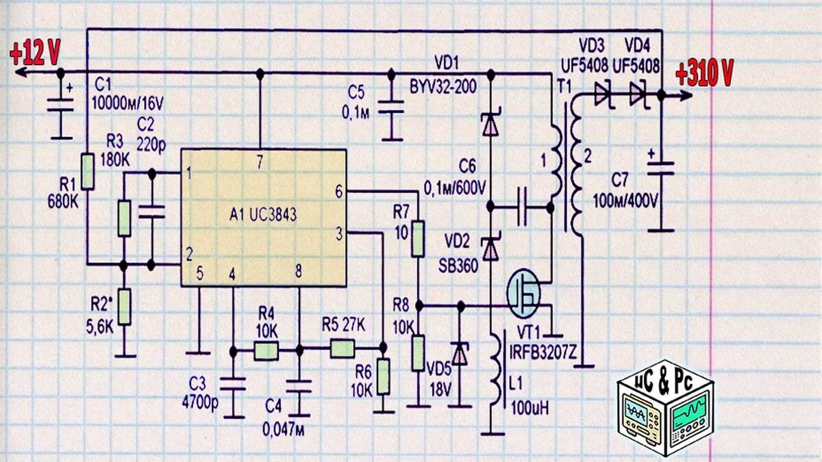 Преобразователь анодного напряжения 310В из 12В для питания радиоламп на UC3843