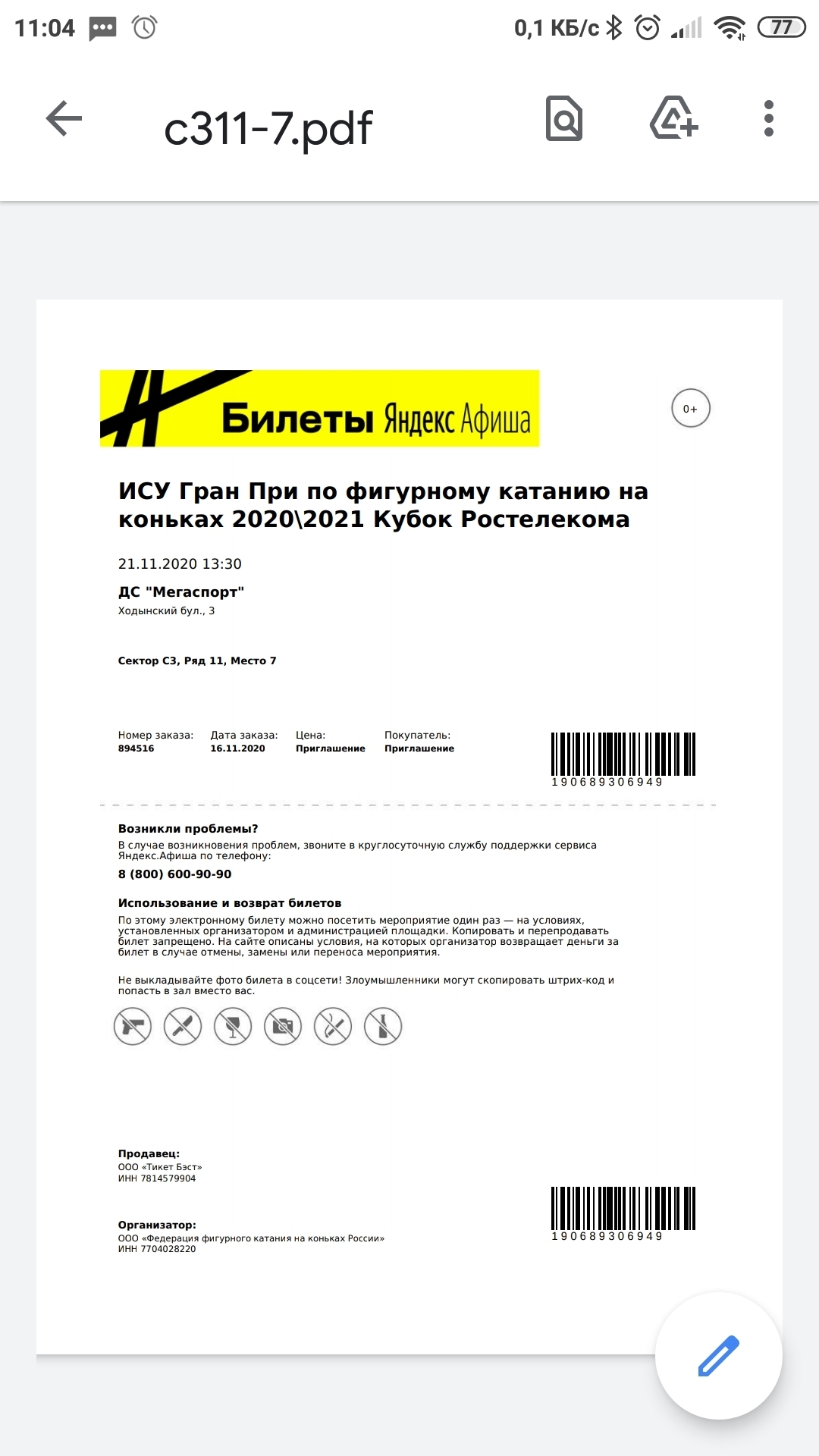 А теперь бинго. Соревнования в тот день длились с 13.30 до 21.00. Сначала людей было мало, зал начал заполняться к 17 часам. И где-то к 17.30 пришли люди с билетами на наши места. Стали разбираться, и выяснилось, что наши билеты- это фотошоп.