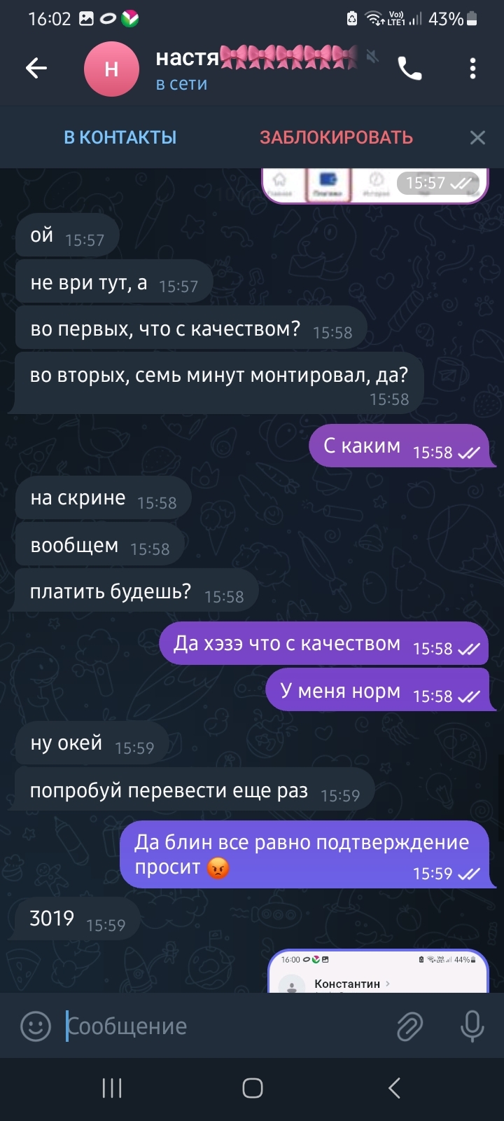 В общем просит скрин, я просто захожу в интернет, скачиваю первую попавшую картинку онлайн банка, тут же редактирую добавляя текст, делаю ухудшение качества чтоб было не разобрать что к чему и скидываю ему псевдоскрин.