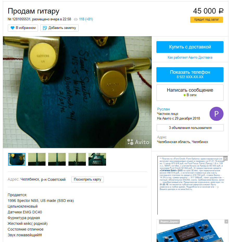 Цена раза в три-четыре меньше, чем это реально сейчас стоит. Регистрация на авито пару дней назад. Фотографии всех лотов в разных интерьерах сделаны. Понятное дело мошенник. Поискал откуда он взял фотографию и нашел пост в сообществе Spector за 2014 год. Мошенник даже не парился, взял полностью фотки и описание из одного из верхних постов: