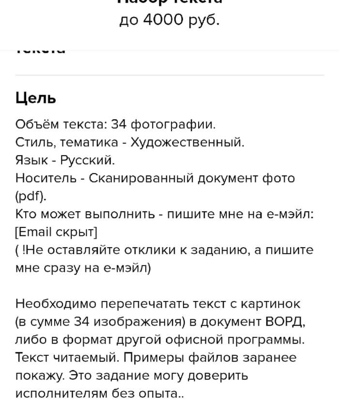 Всем доброго времени суток! Мошенники не дремлют и на этот раз добрались до, казалось бы, проверенного сайта. Уже примерно месяц каждый день по три-четыре раза появляется один и тот же заказ, который выглядит как сказка, особенно для начинающих исполнителей: