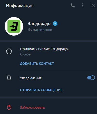 Сразу смутило, что обращение в мессенджере и какая-то там скидка, но больше всего смутило, что "срок доставки не изменится" - это точно не Эльдарадо. А, ну и позже телега написала про эмодзи статус, думаю, телеграмм просто обязан из мессенджера убрать подобные синие галки верификации для неофициальных/неподтвержденных аккаунтов.