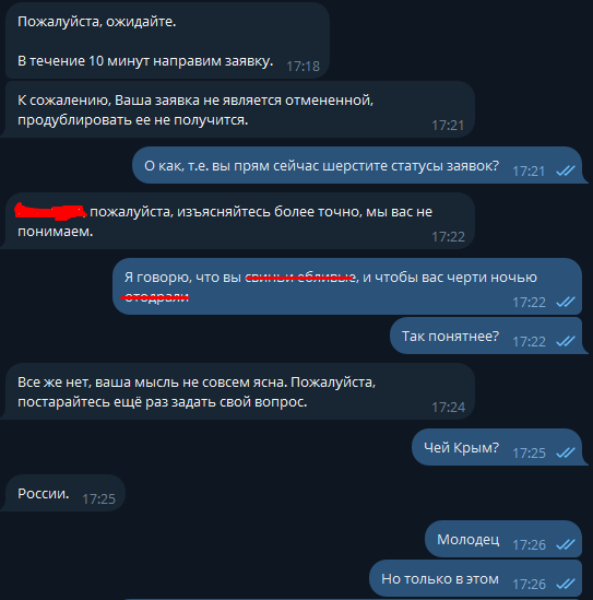 Оформила недавно покупку техники, заказ висит в исполнении, работаю и в телеграмме вижу данное сообщение: