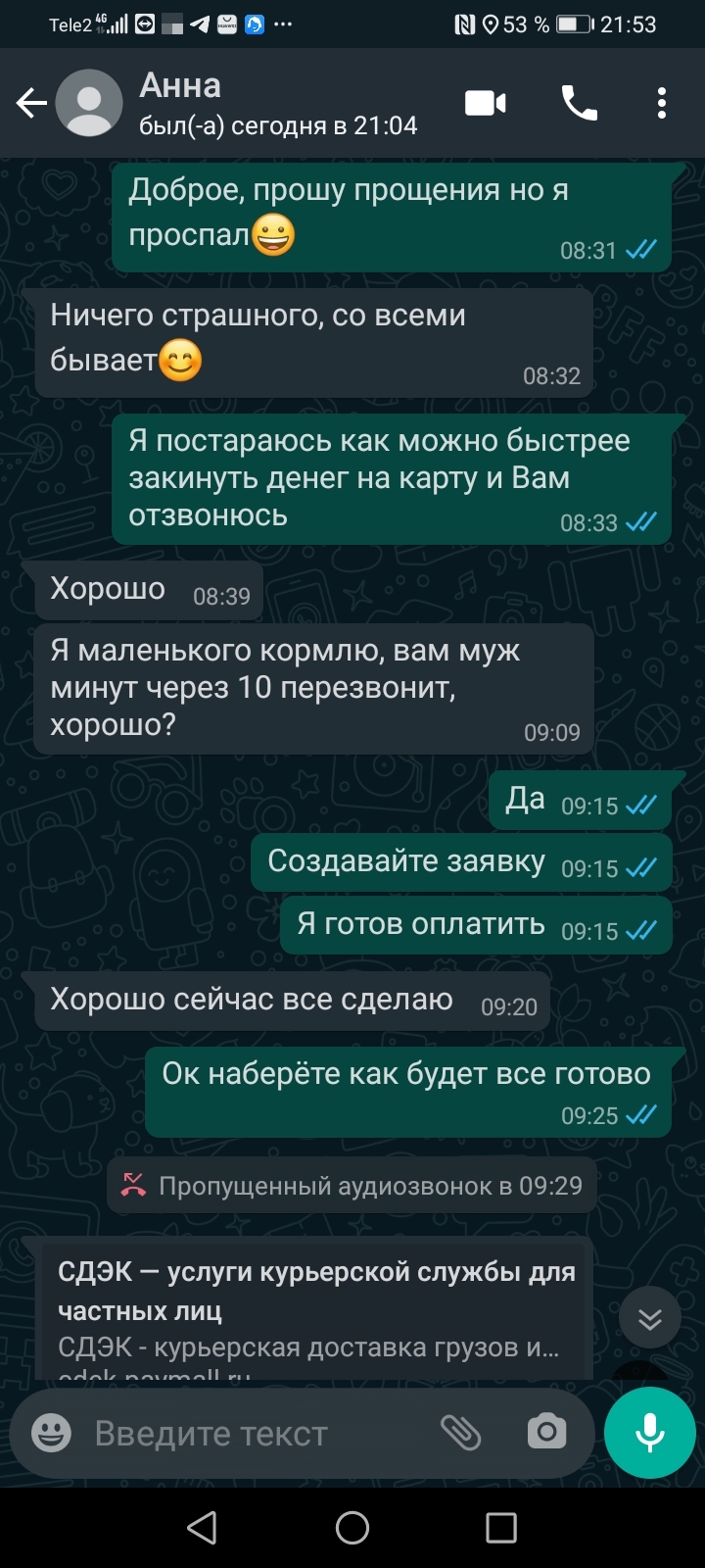 2) при звонке вежливо, но очень настойчиво торопили, ссылаясь на грудничка и т.п якобы муж уже на пункте отправки с товаром