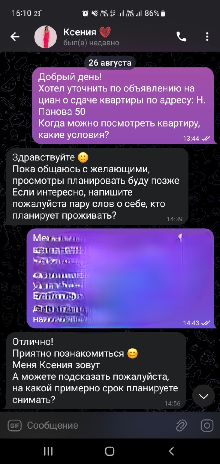 После того как я согласилась приехать в порядке очереди, объявление было снято с публикации, а диалог был удалён Ксенией )