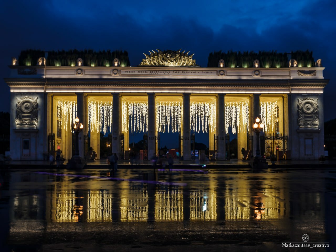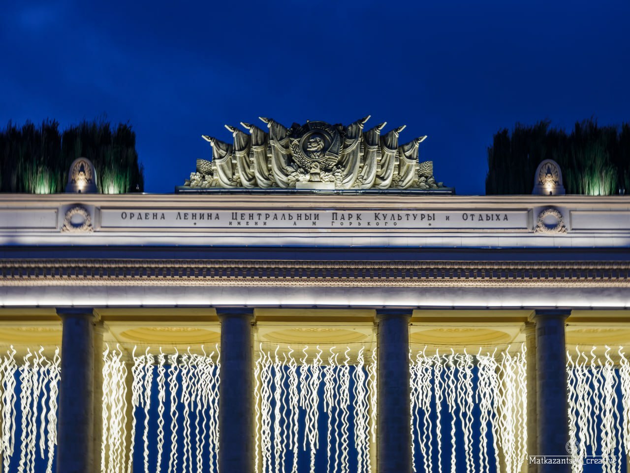 Москомархитектура представила инсталляцию, посвященную дню рождения Парка Горького. В августе ему исполнится 95 лет. Арт-объект «Время вперед» разработан для арки главного входа.