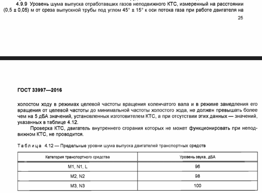 Ещё не запутались? И вот у меня возникает вопрос: если транспортное средство умещается в эти самые 96 Дб (на расстоянии полметра, напомню) на своих средних оборотах, то какой результат по шуму надо ожидать на расстоянии например 5 метров (диагональ от прибора на опоре до мотоцикла в средней полосе) при оборотах двигателя в 75% от максимальных (разгоняется, ещё не переключил передачу). Точные измерения на определённых оборотах и расстоянии нужны не просто так а для стандартизации. То есть прежде, чем начинать штрафовать, неплохо бы провести целую серию тестов с заведомо корректными глушителями, чтобы понять, какие значения нужно считать нормой с поправкой на расстояние. Сделали ли это - большой вопрос. Возможность получить штраф с заведомо исправной выхлопной системой только на основании того, что водитель в моменте раскрутил двигатель до повышенных оборотов, сама по себе звучит также странно.