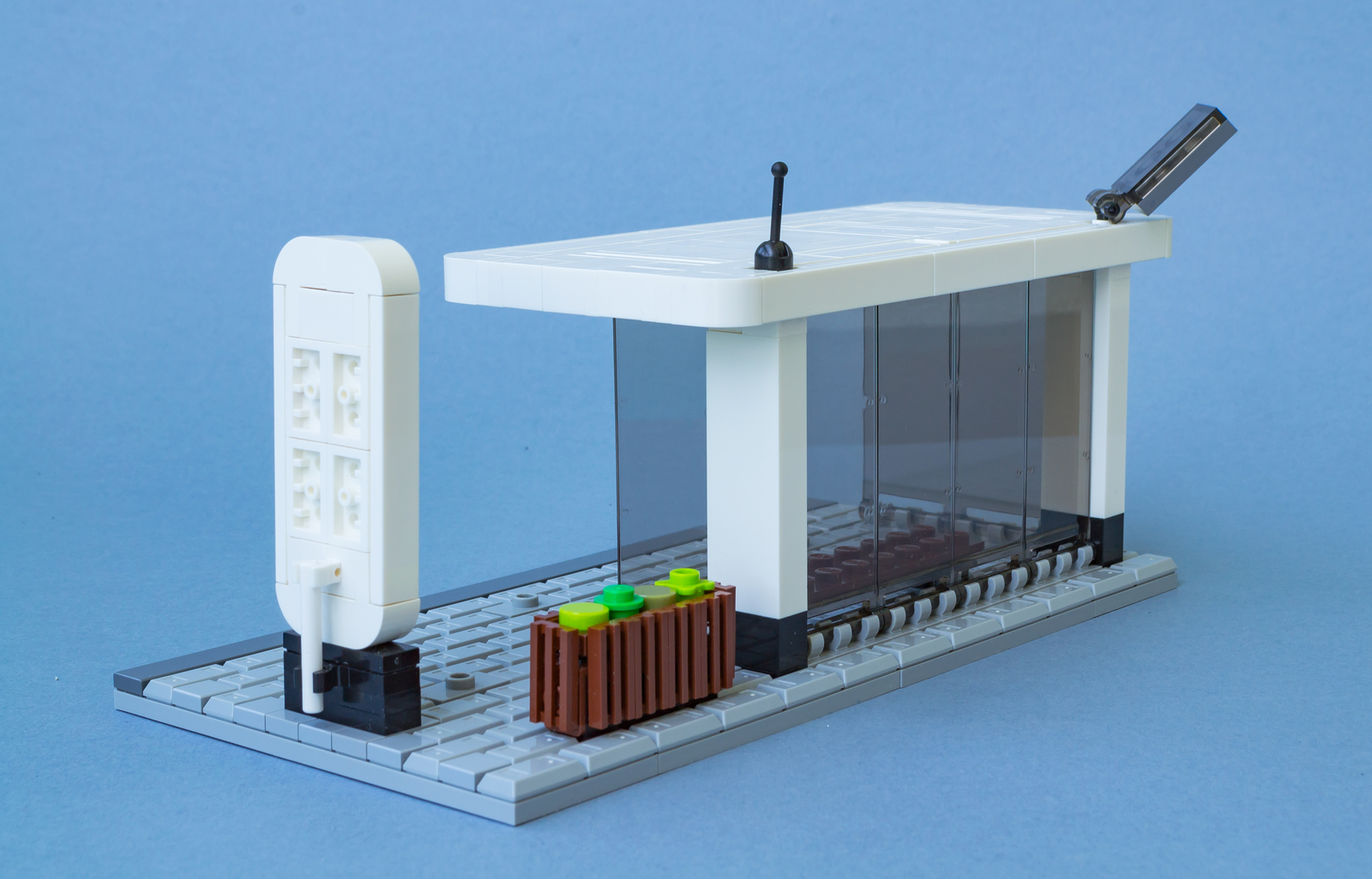 Недавно я показал, модель автобуса ЛиАЗ из Лего (https://pikabu.ru/story/mezhdugorodniy_avtobus_liaz_5251_iz_...), а теперь настала очередь автобусной остановки