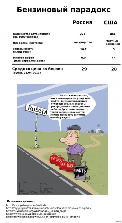 А теперь к делу. Бензин в США дешевле чем в РФ. Пруфлинки внизу найдешь. Средний русский живет 63 года. Средний американец живет 76 лет, то есть на 20% дольше. Вот и думай, каким говном должны питаться русские по сравнению с американцами, чтобы такая разница получилось. Мальчик, а ты сам-то сравнивал цены на проезд и парикмахерскую? Вот сначала сравни, а потом что-то заявляй.