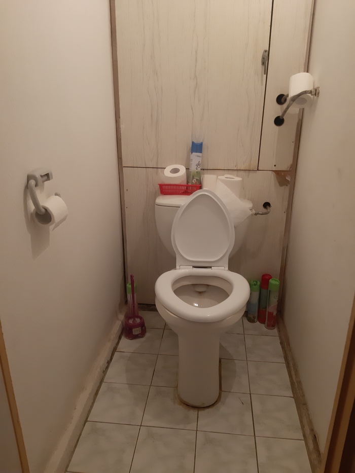 Щель под унитазом. Не знаю, кто и как это безобразие устанавливал, но это реально белый конь! Плюс к этому неблагозвучному сопровождению, одна из соседок ставила свой освежитель наверх. Унитаз шатается, и освежитель всегда летит вниз. Получается "Тыг-дык- бум-дзынь!" Граната покатилась по полу. Не взорвалась? Счастливый день! Каждый раз наклоняйся, поднимай освежитель и наслаждайся ароматами этого места.