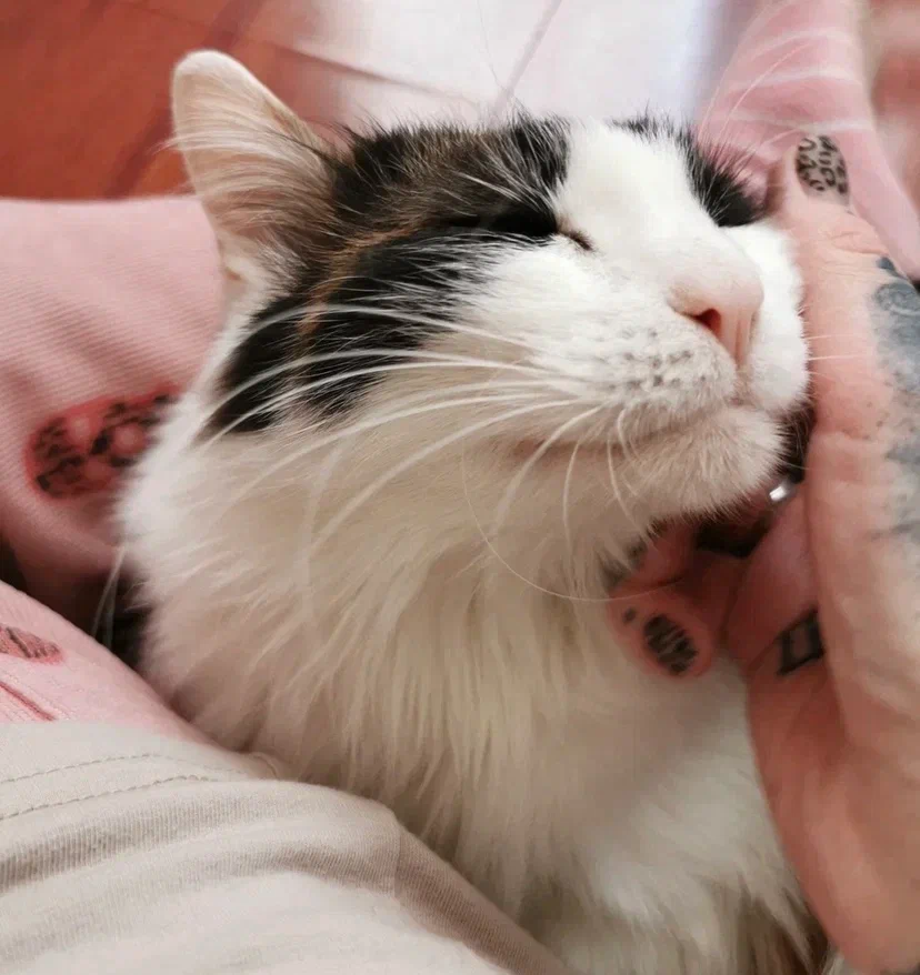 Сильва вместе с 9 другими котиками была спасена из одной из многочисленных "бабкиных квартир". Мы сначала ее там даже не заметили, сидела за шкафов, вжавшись под батарею. Так была напугана и вжималась, что получила огромный ожог на шее! Но страх был сильнее боли😢