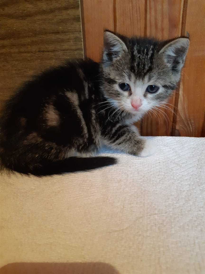 1 мальчик (слева) мраморного окраса, с голубыми глазками.
