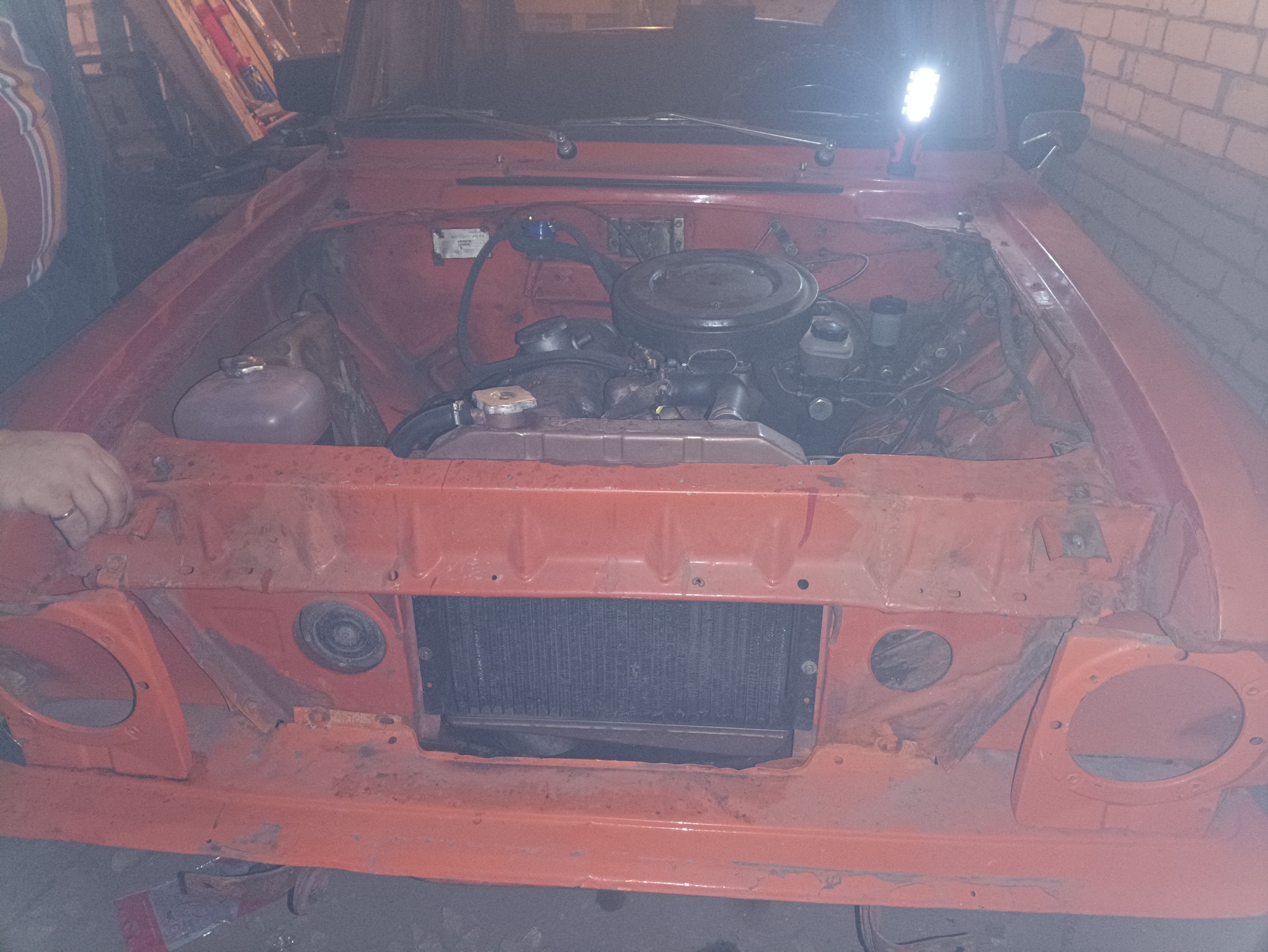 Самое удивительное— кузов оказался не гнилым! Главной проблемой была «морда». Когда-то, ещё при первых хозяевах, машина попала в аварию, и ей сделали неумелый ремонт. Пришлось переделывать всё заново: выправлять геометрию, готовить и перекрашивать. Зато теперь он выглядит так, как и должен был с завода.